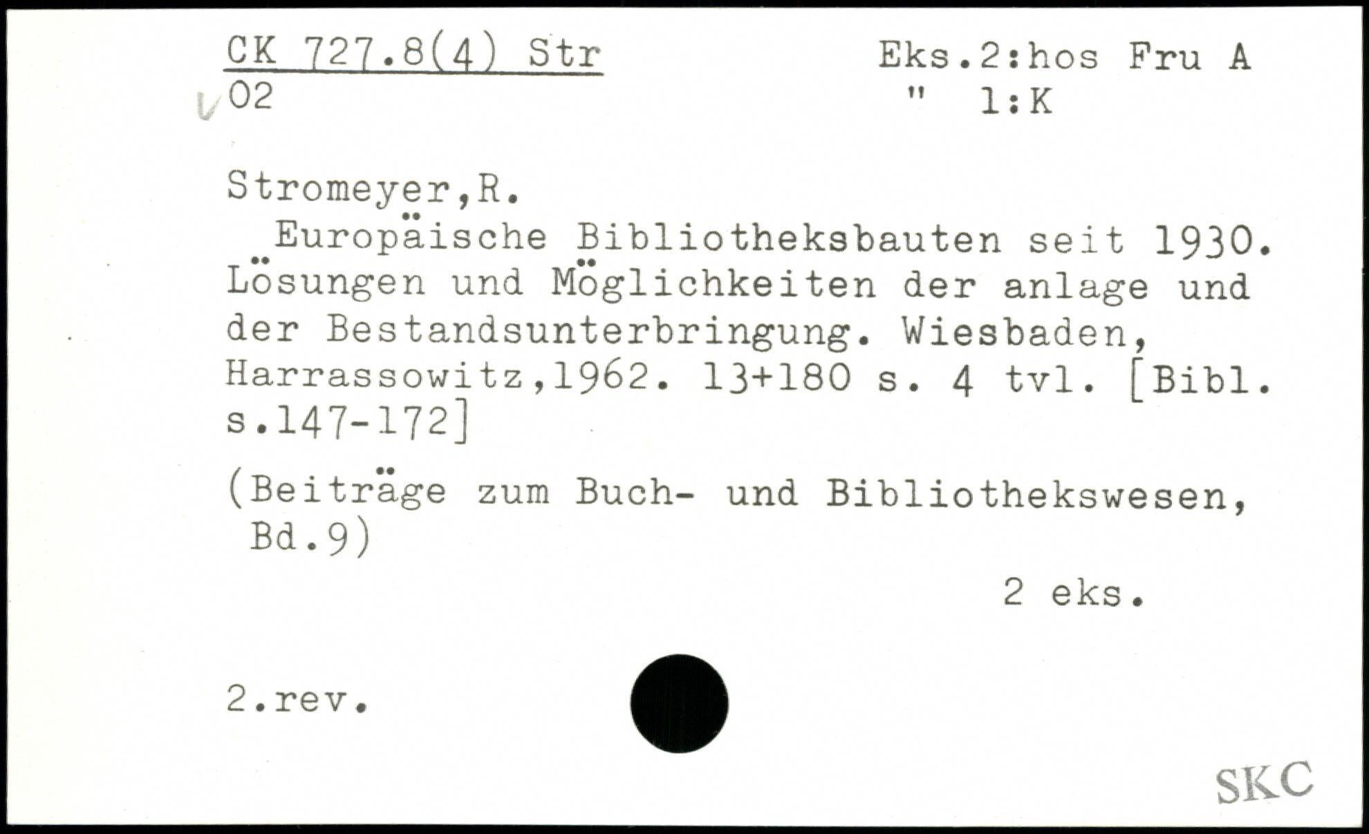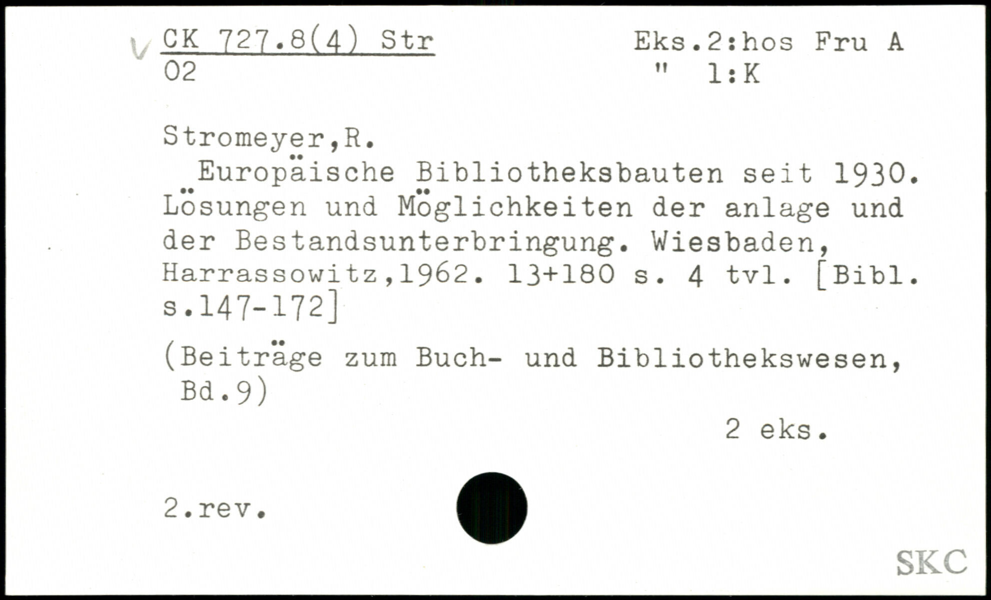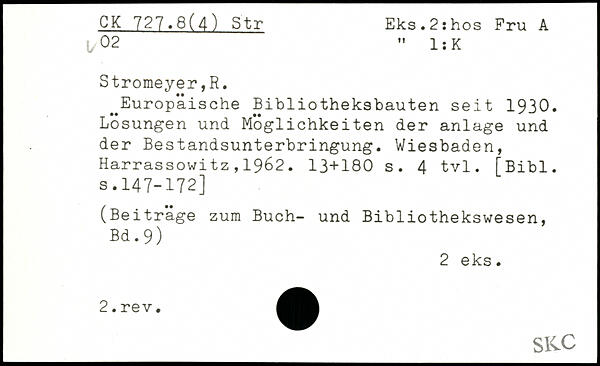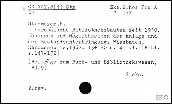 Europäische Bibliotheksbauten seit 1930. Losungen und Möglichkeiten der anlage und der Bestandsunterbringung.