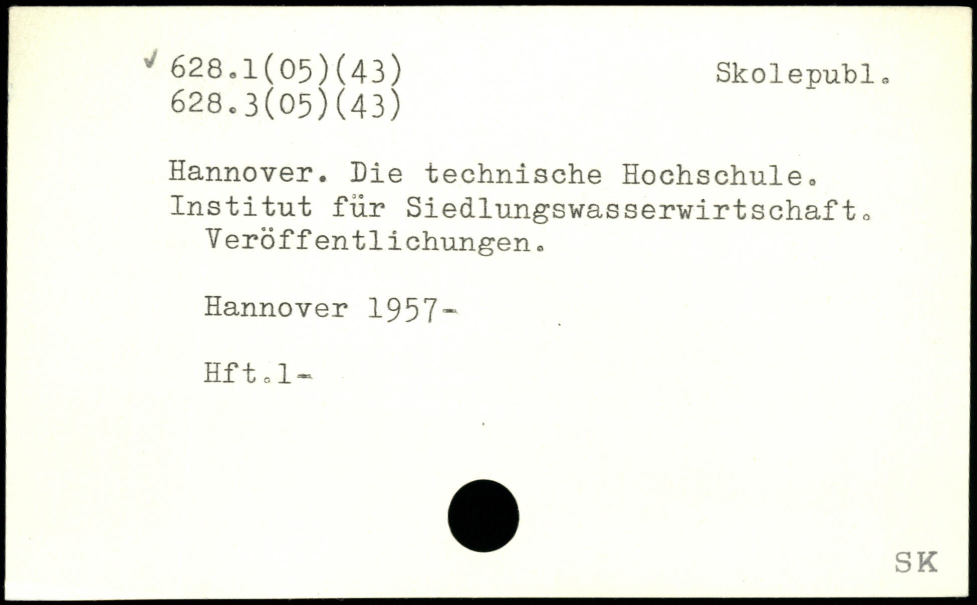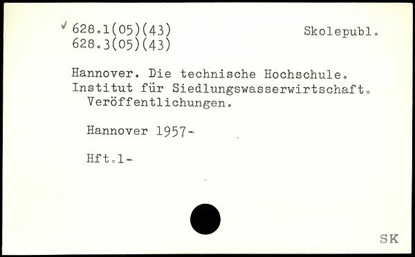 Hannover. Die technische Hochschule. Institut für Siedlungswasserwirtschafto V eröff entlichungen.