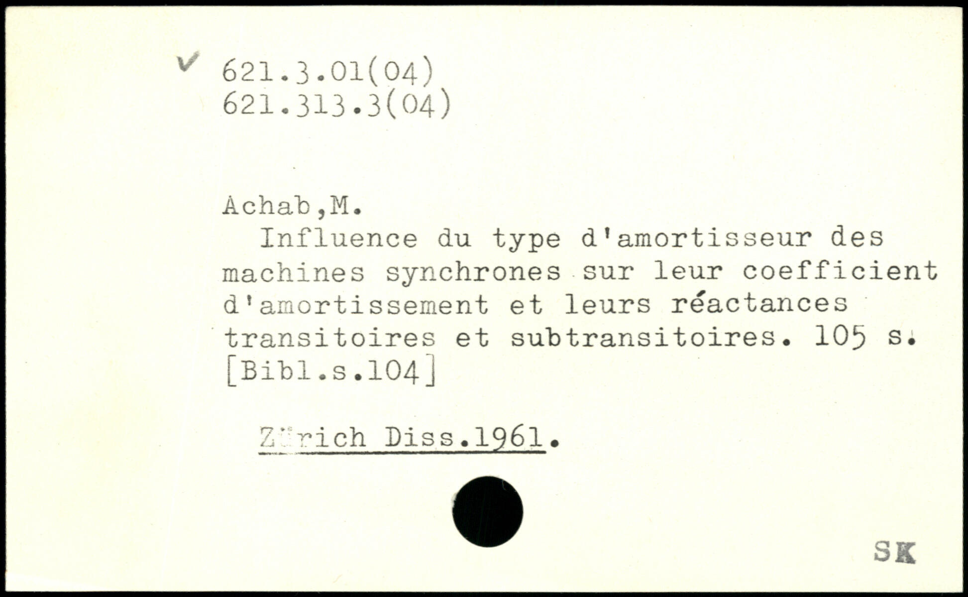 Influence du type d’amortisseur des machines synchrones sur leur coefficient d’amortissement et leurs réactances transitoires et subtransitoires.