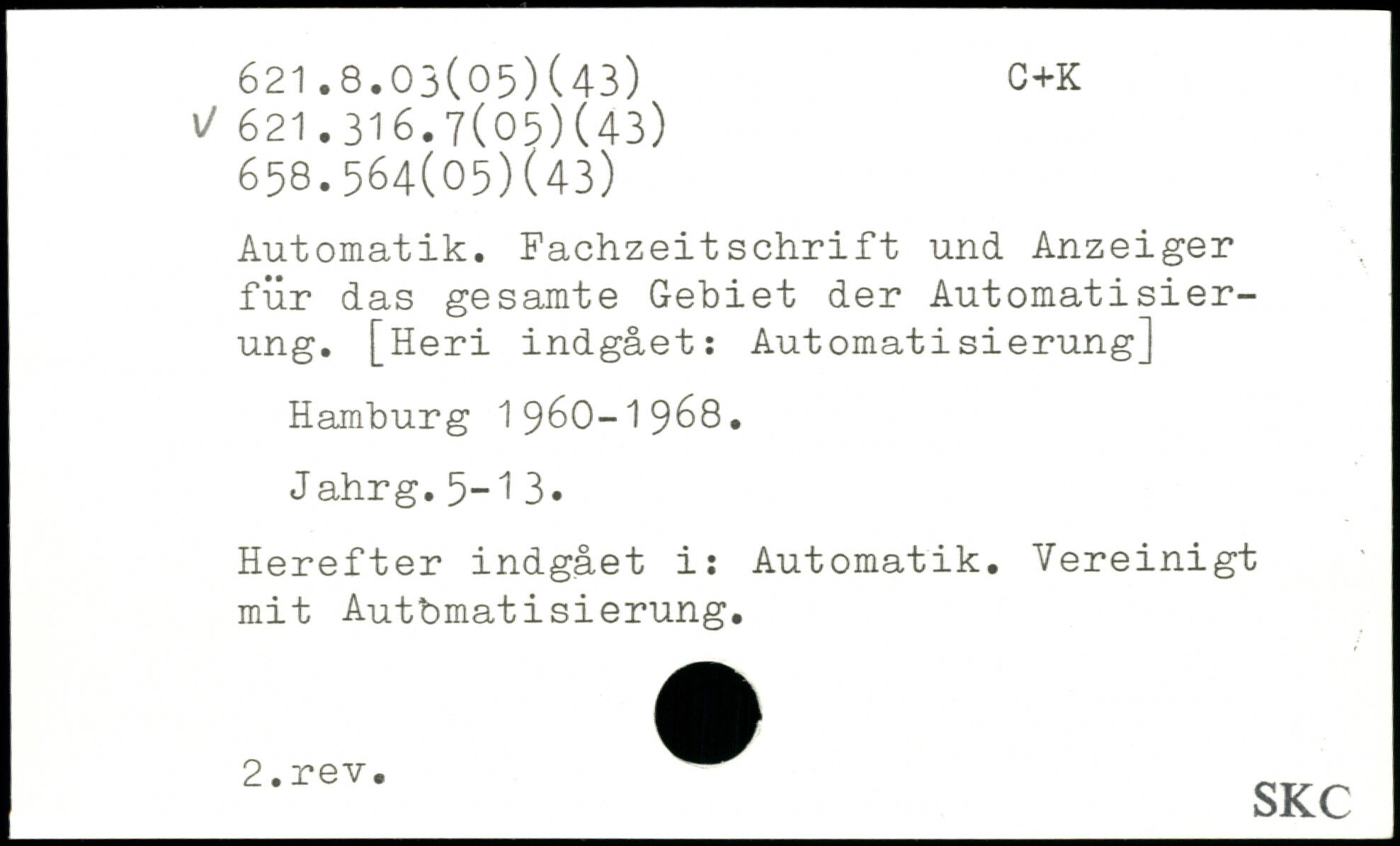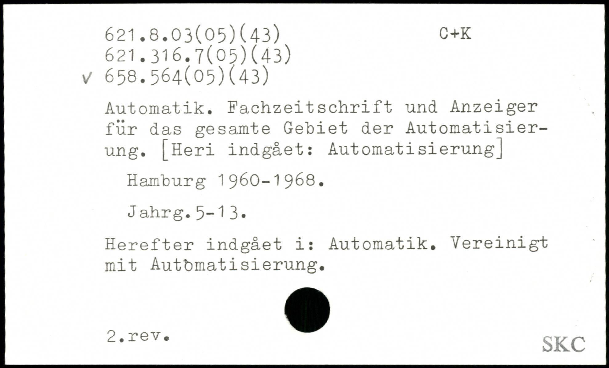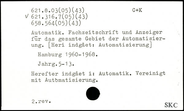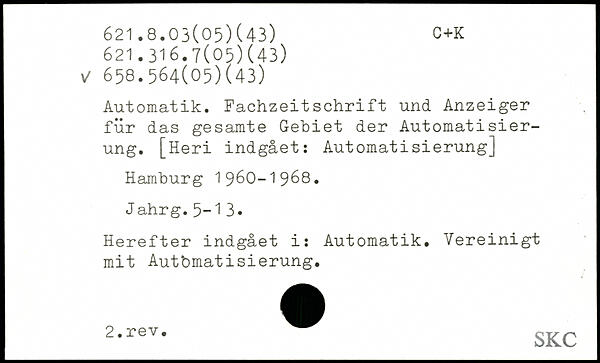 Automatik. Fachzeitschrift und Anzeiger für das gesamte Gebiet der Automatisierung. [Heri indgået: Automatisierung]