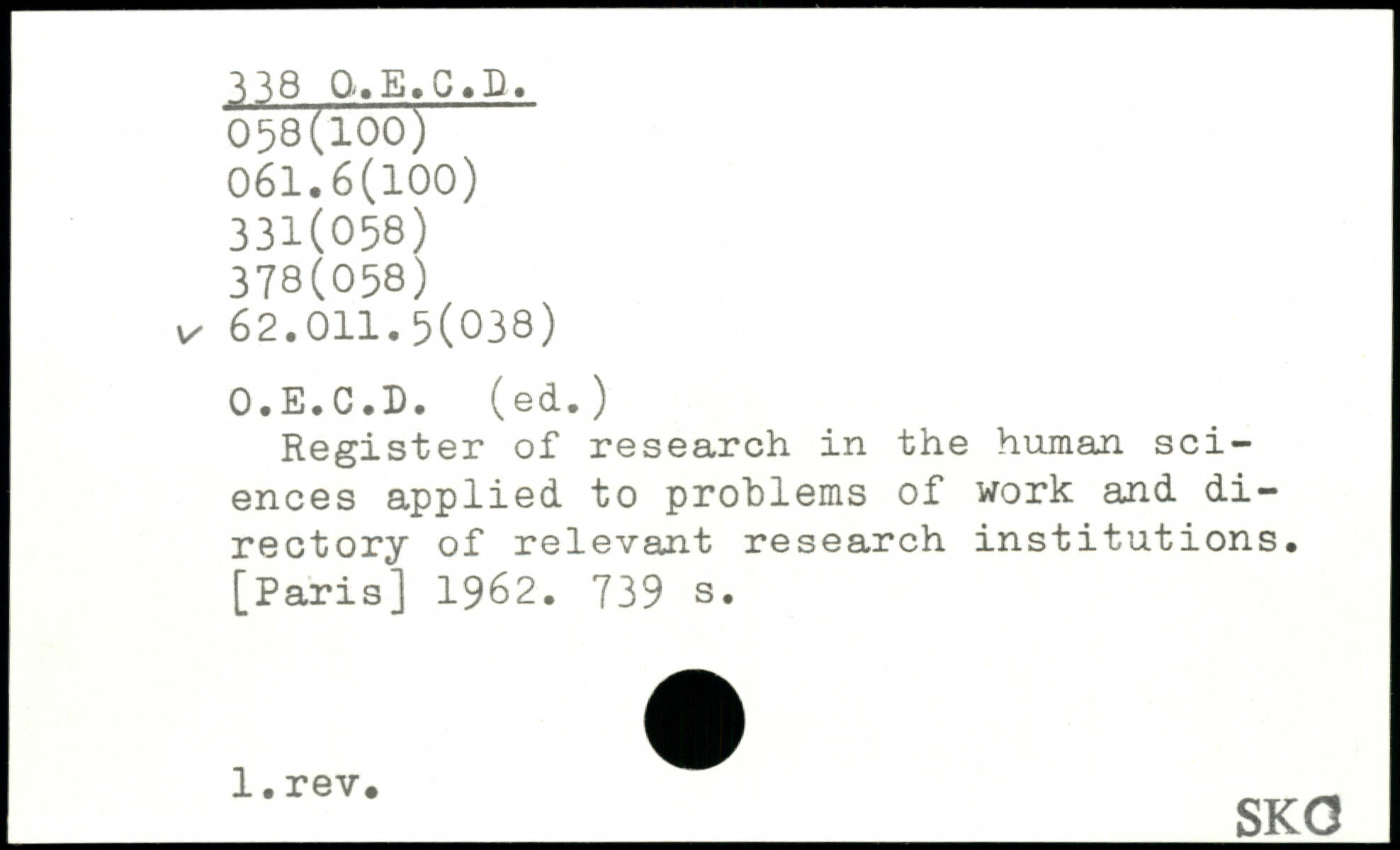 Register of research in the human sciences applied to problems of work and di-rectory of relevant research institutions.