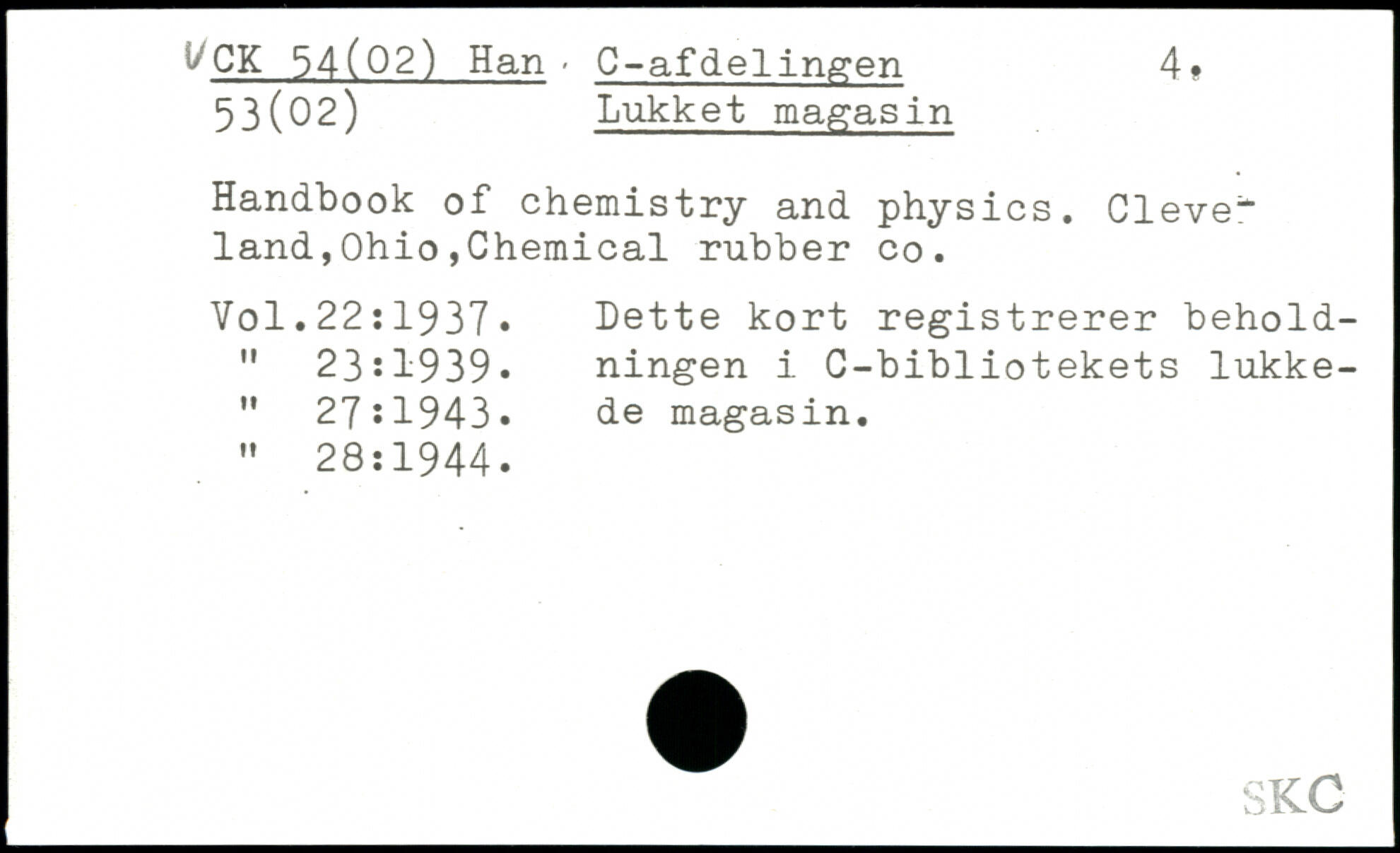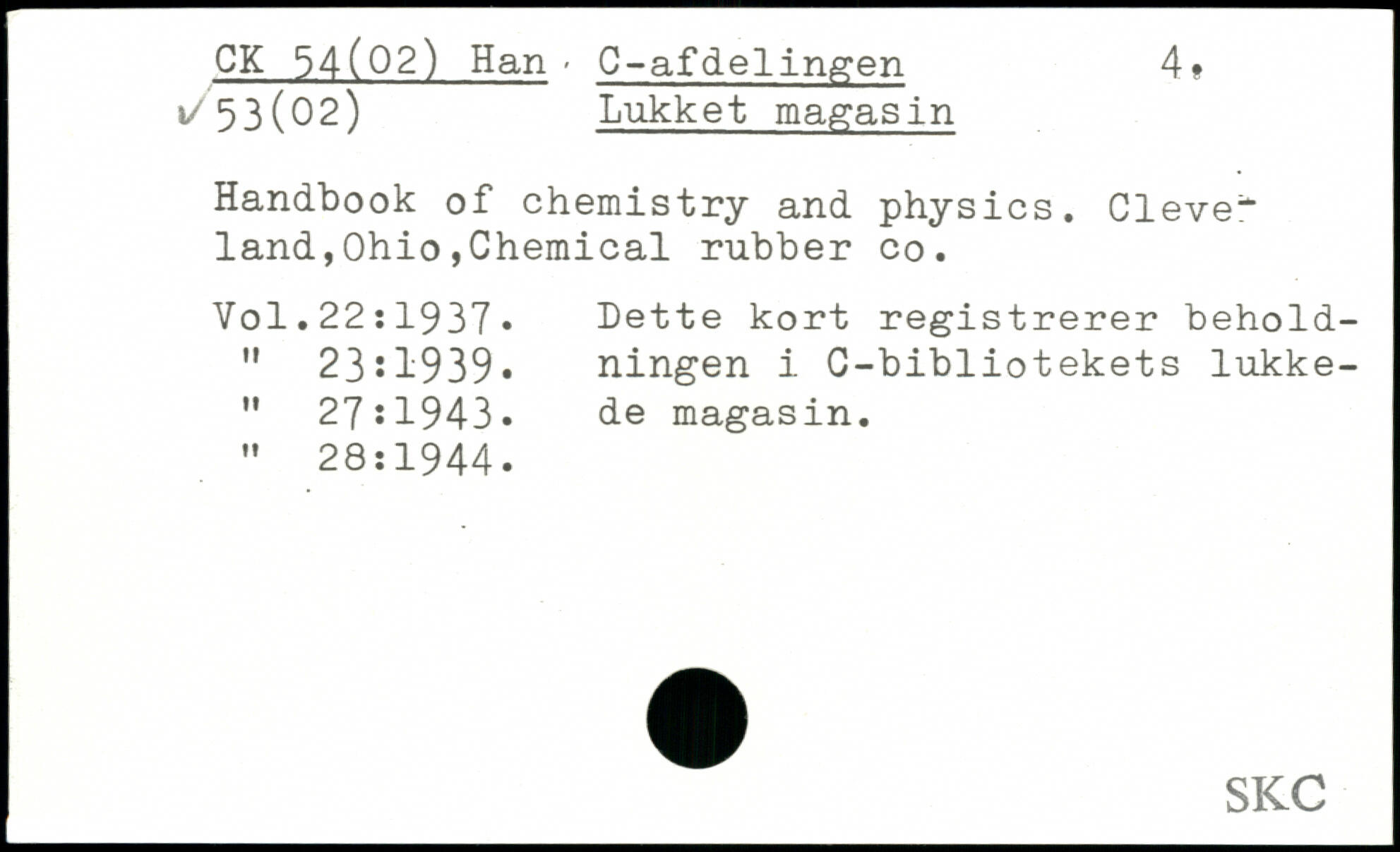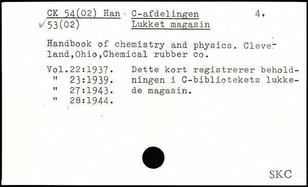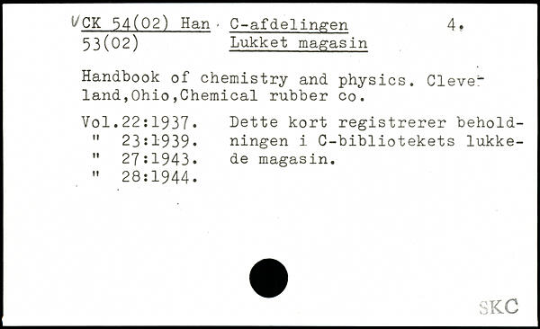 Handbook of chemistry and physics. Cleve. land,Ohio,Chemical rubber co.