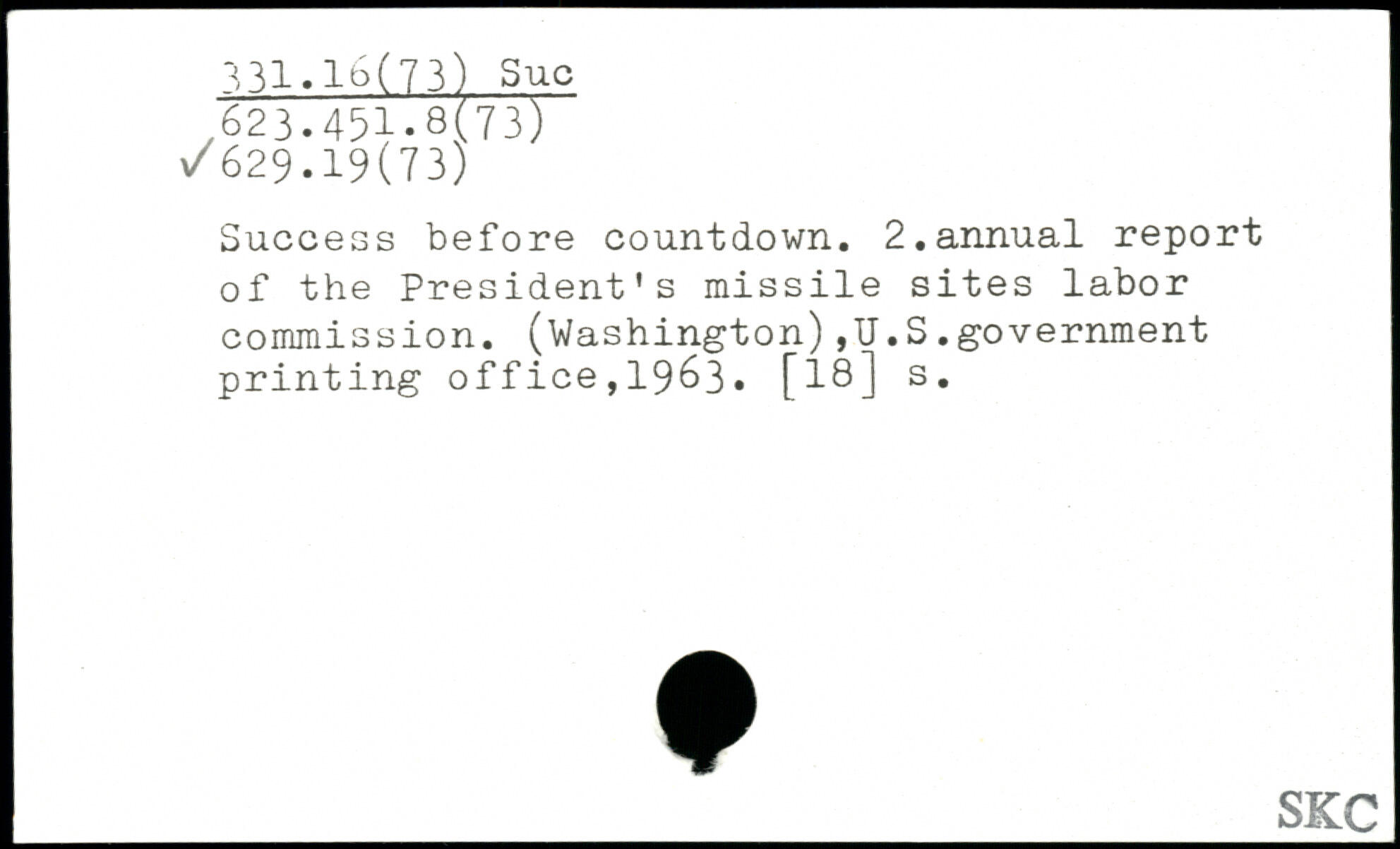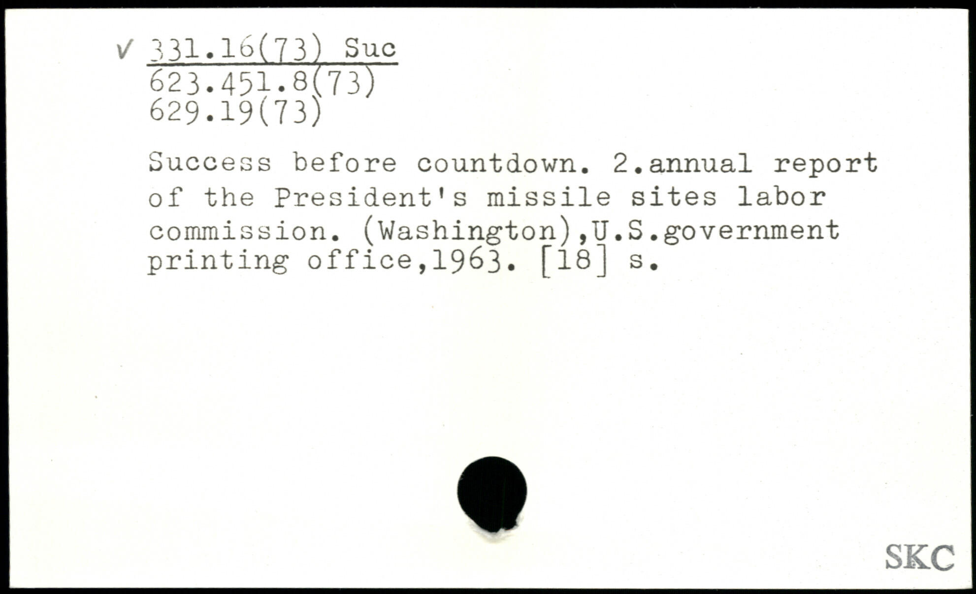 Success before countdown. 2.annual report of the President's missile sites labor commission. (Washington),U.S.government printing office,1963.