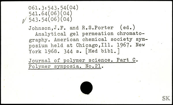 Analytical gel permeation chromatography. American chemical society symposium held at Chicago,111. 1967.
