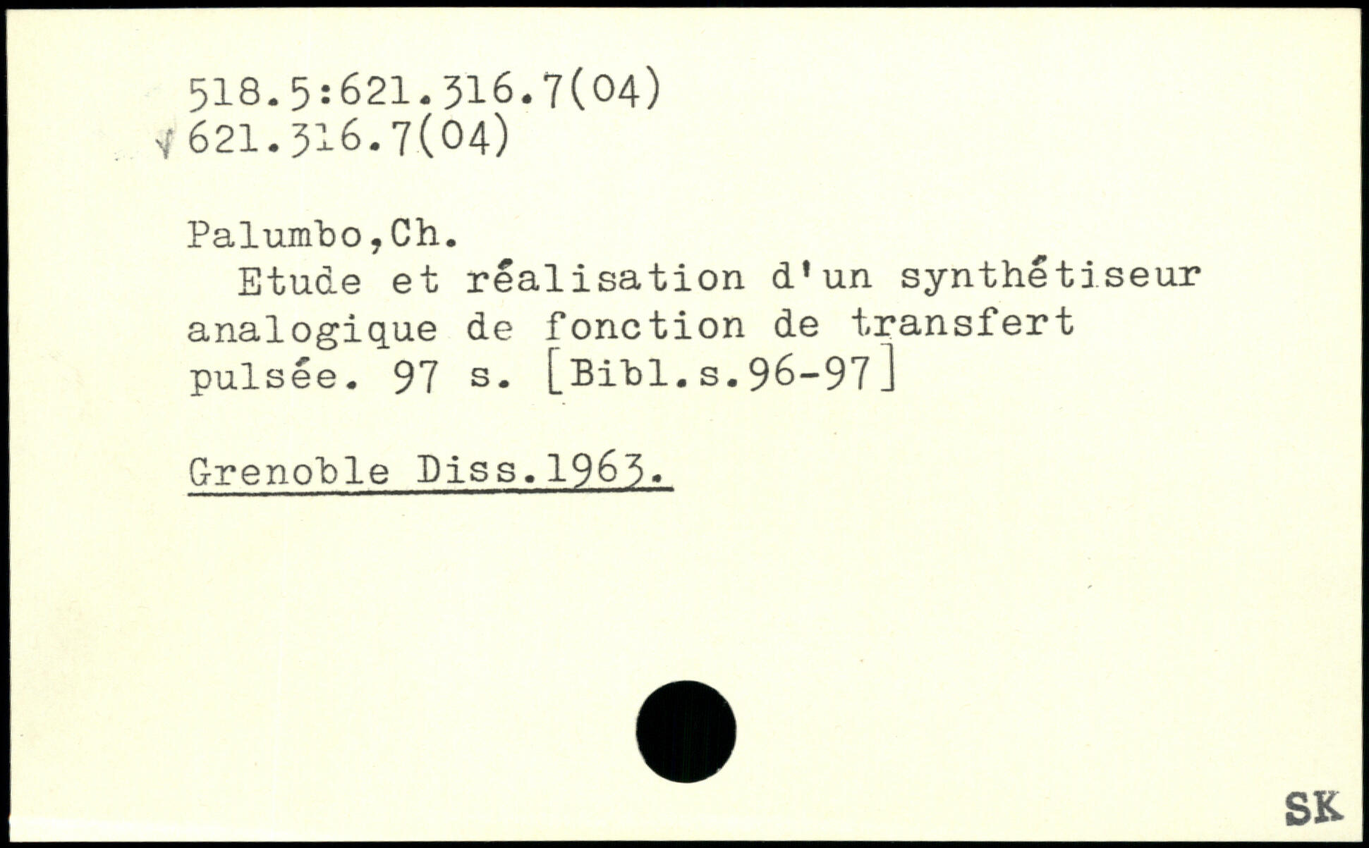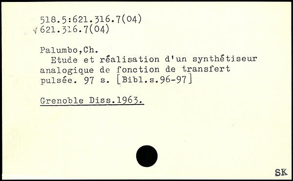 Etude et réalisation d'un synthétiseur analogique de fonction de transfert pulsée.
