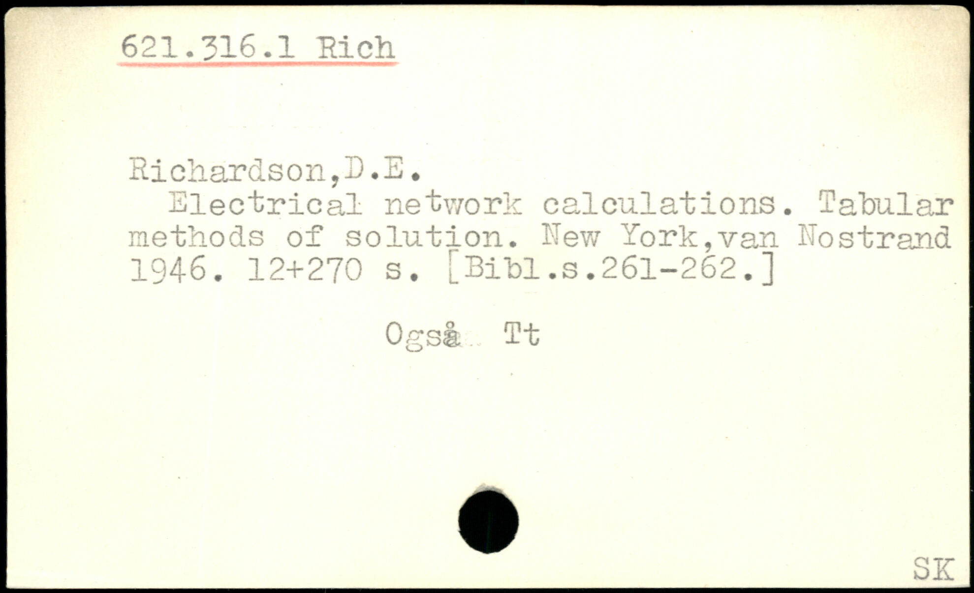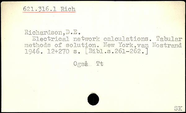 Hi char els on, D. E. Electrical network calculations. Tabular methods of solution. New York, van No strand 1946.