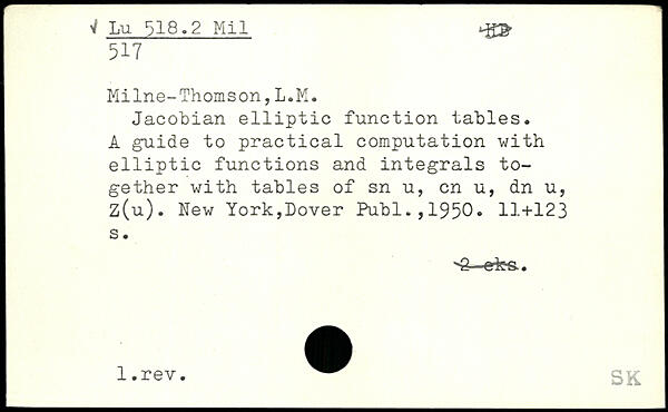 Jacobian elliptic function tables. A guide to practical computation with elliptic functions and integrals together with tables of sn u, cn u, dn u, i Z(u).