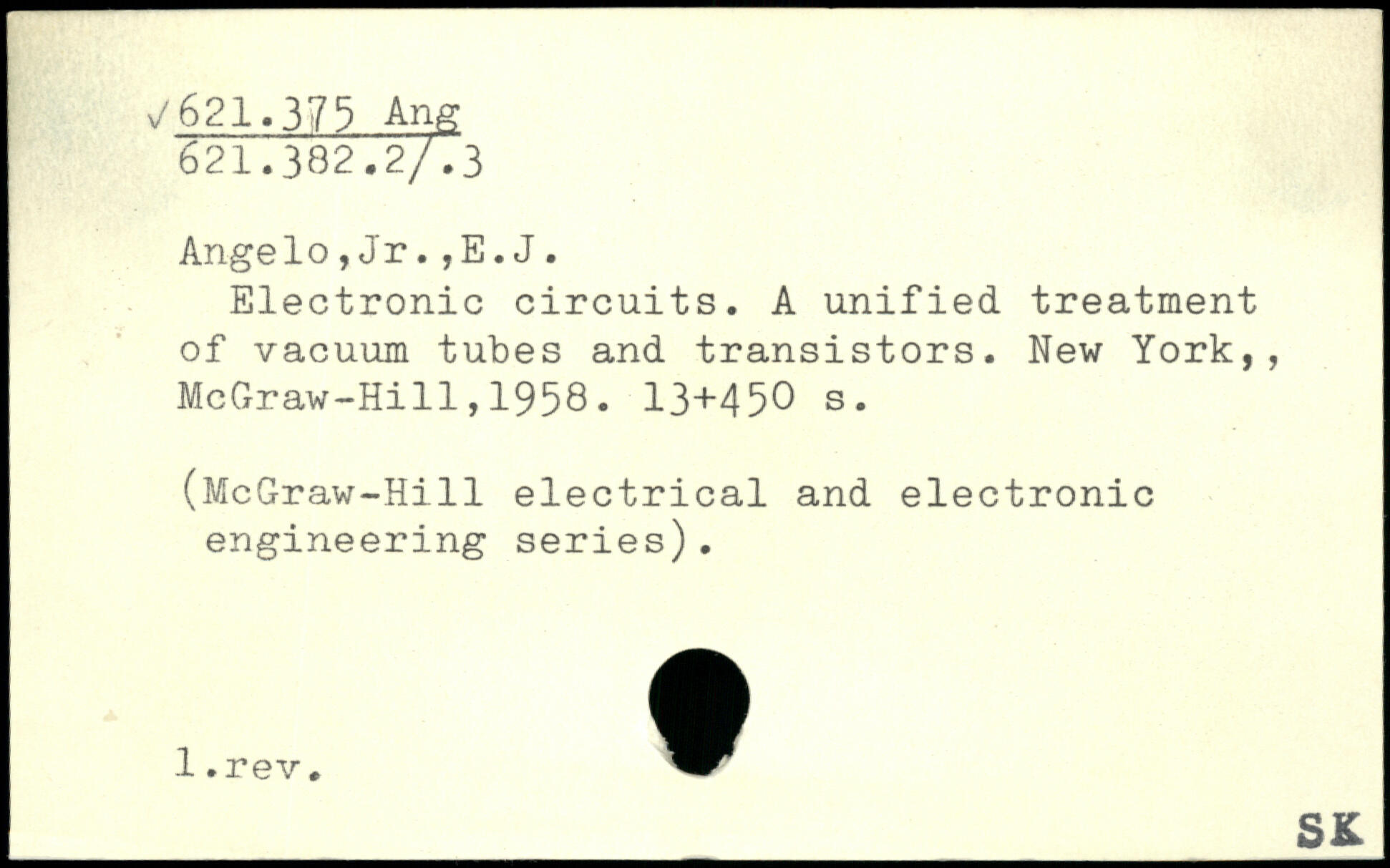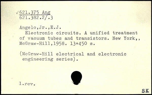 Electronic circuits. A unified treatment of vacuum tubes and transistors. New York,, McGraw-Hill,1958.