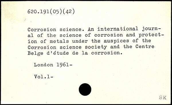 Corrosion science. An international journal of the science of corrosion and protection of metals under the auspices of the Corrosion science society and the Centre Belge d’étude de la corrosion.