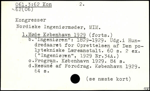 Nordiske Ingeniørmøder, MIM. l.Møde