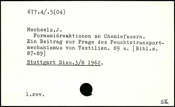 Formamidreaktionen an Chemiefasern. Ein Beitrag zur Frage des Feuchtetransportmechanismus von Textilien.