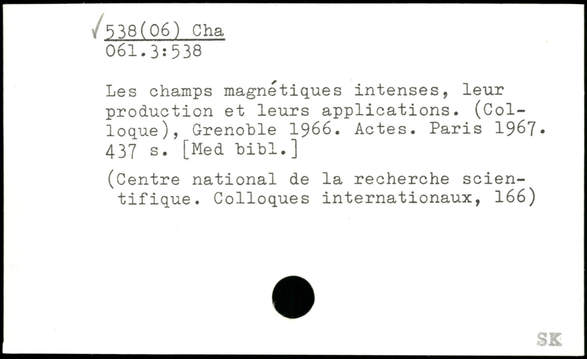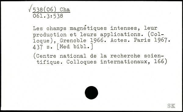 Les champs magnétiques intenses, leur production et leurs applications. (Colloque), Grenoble 1966. Actes.