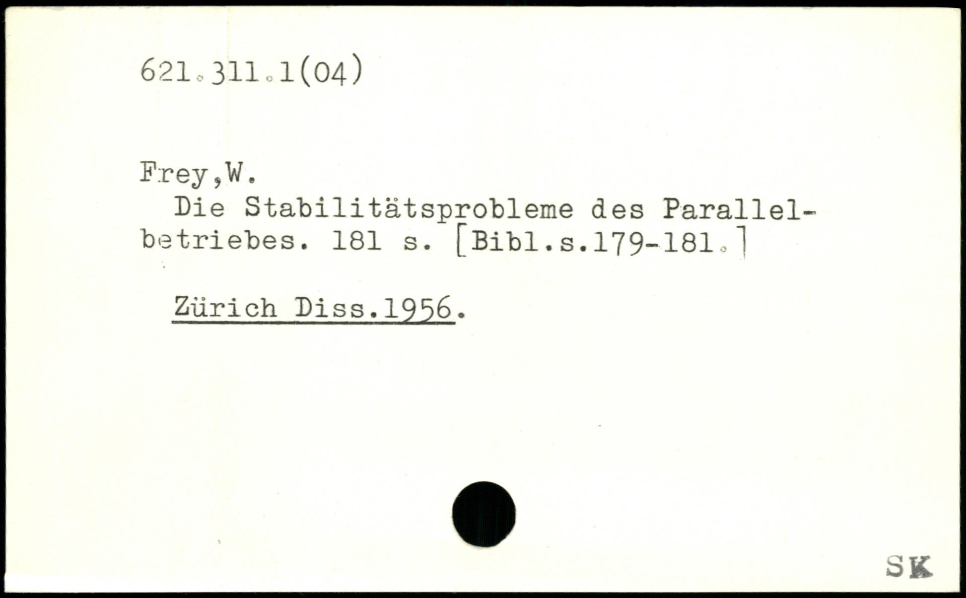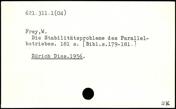 Die Stabilitätsprobleme des Parallelbetriebes.