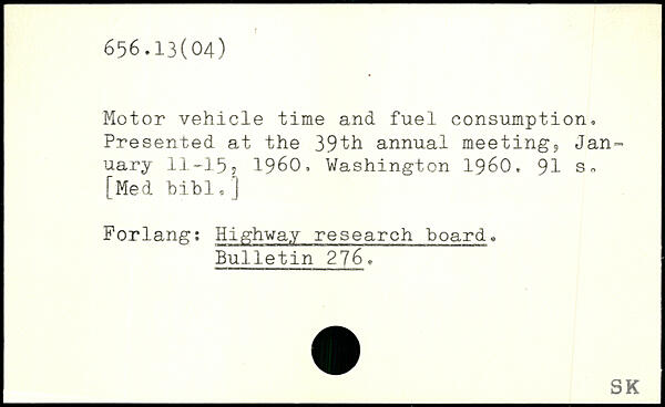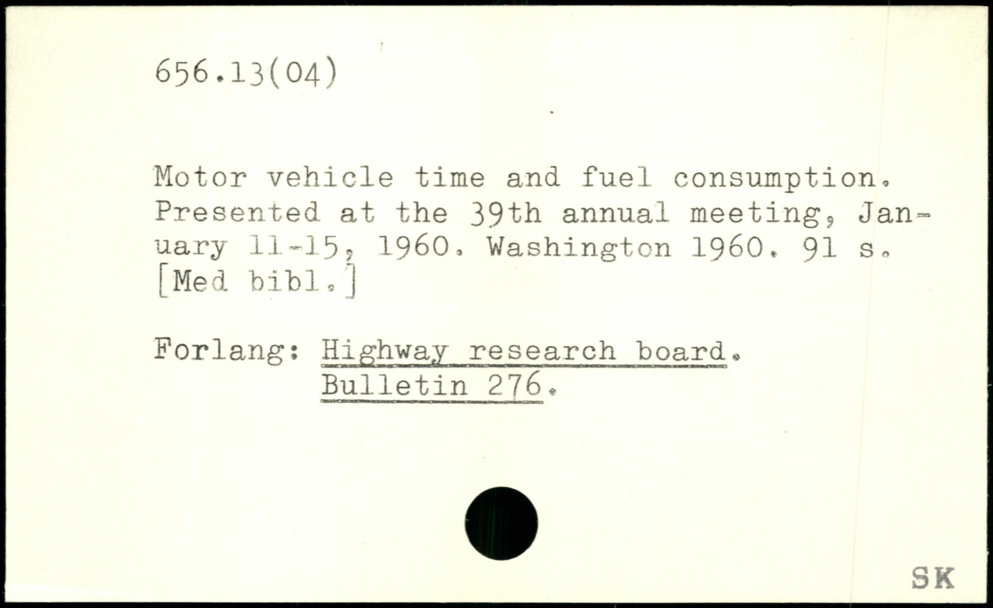 Motor vehicle time and fuel consumption. Presented at the 39"tk annual meetings, January 11-15, 1960