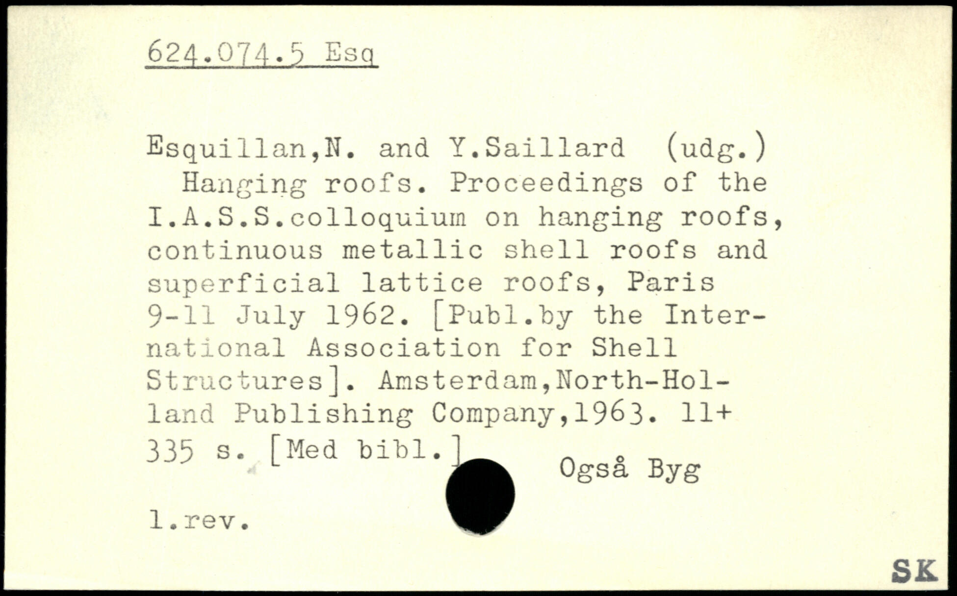 Hanging roofs. Proceedings of the I.A.S.S.colloquium on hanging roofs, continuous metallic shell roofs and superficial lattice roofs, Paris 9-11 July 1962.