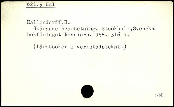 Skärande bearbetningo Stockholm,Svenska bokförlaget Bonniers,1958, 316 s.