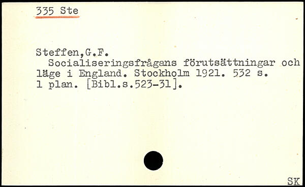 Socialiseringsfrågans förutsättningar oeh läge i England.