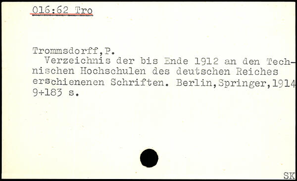 Verzeichnis der bis Ende 1912 an den Technischen Hochschulen des deutschen Reiches erschienenen Schriften.
