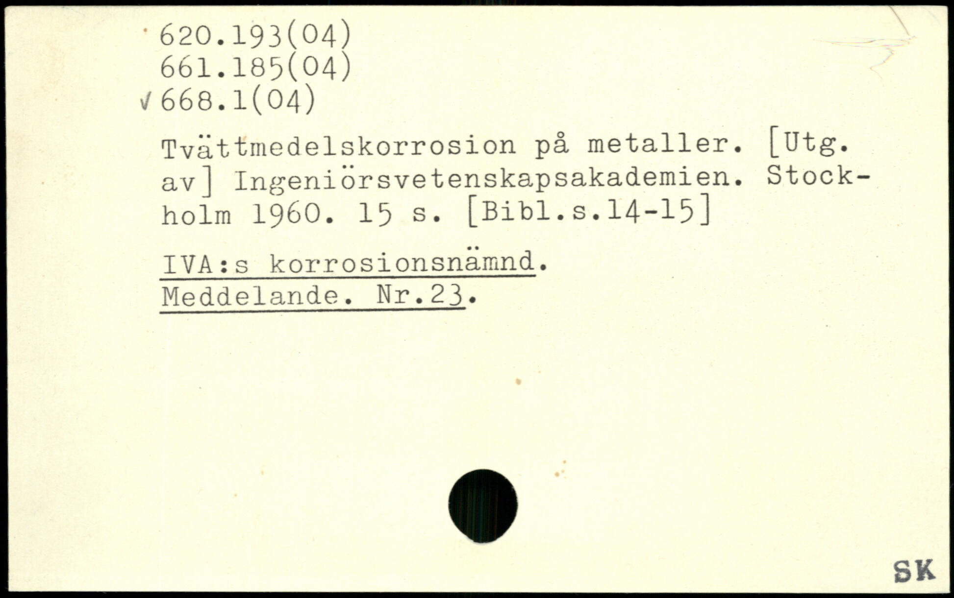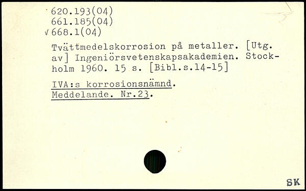 Tvättmedelskorrosion på metaller. [Utg. av] Ingeniorsvetenskapsakademien.