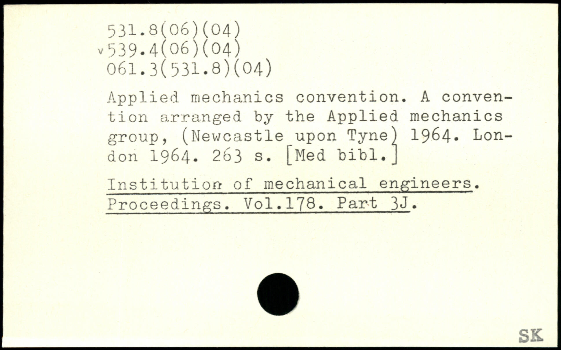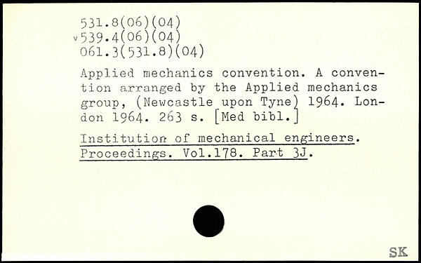 Applied mechanics convention. A convention arranged by the Applied mechanics group, (Newcastle upon Tyne) 1964