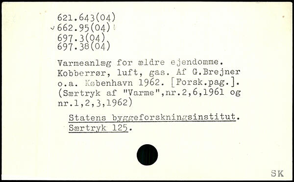 Varmeanlæg for ældre ejendomme. Kobberrør, luft, gas. Af G.Brejner o.a.