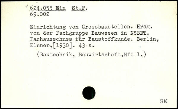 Einrichtung von Grossbaustellen. Hrsg, von der Fachgruppe Bauwesen in NSBDT. Fachausschuss für Baustoffkünde.