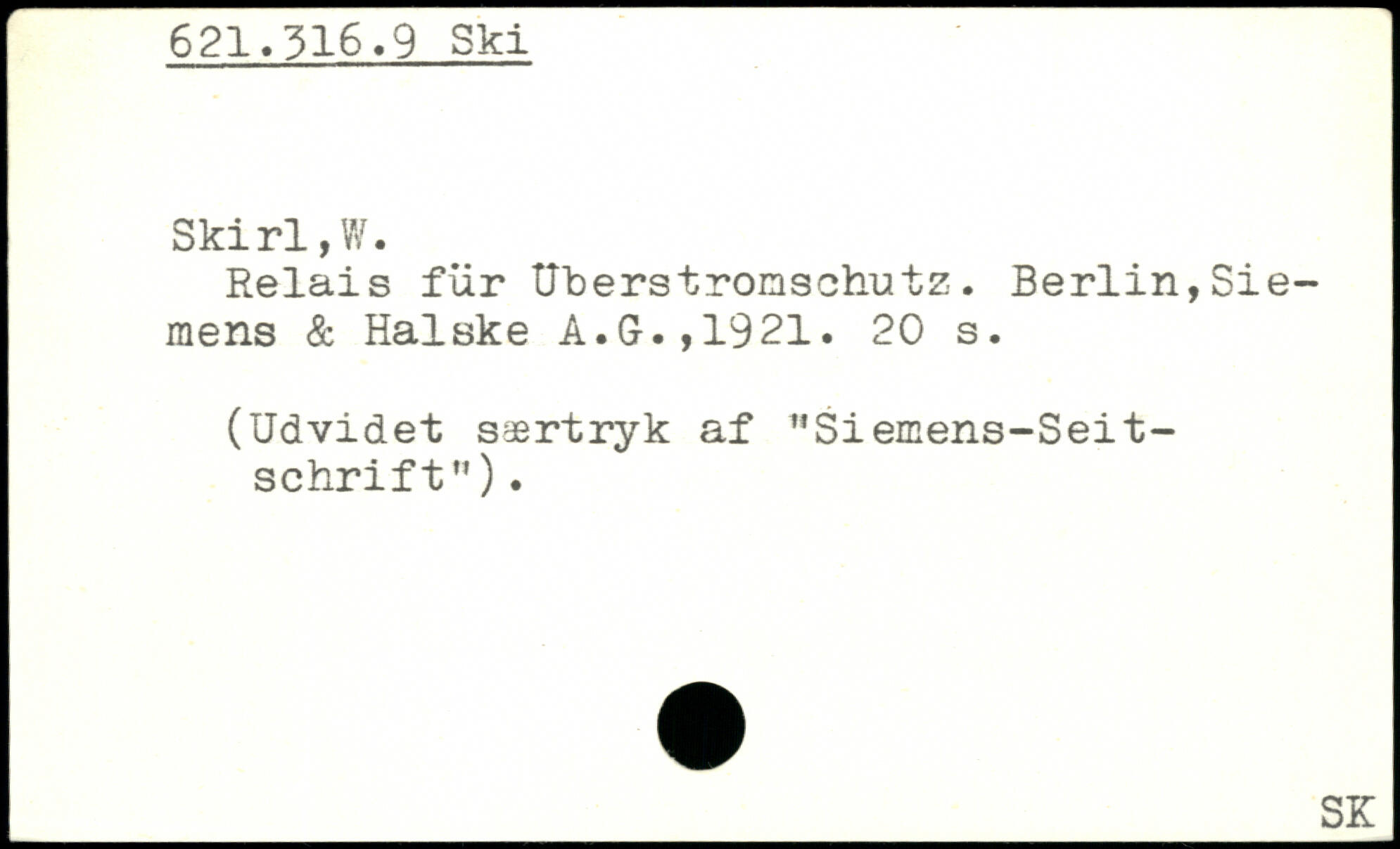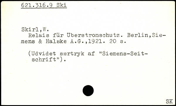 Relais für Uberstronschutz. Berlin,Siemens & Halske A.G.,1921.