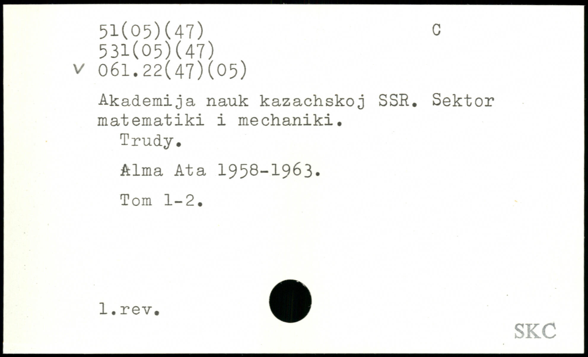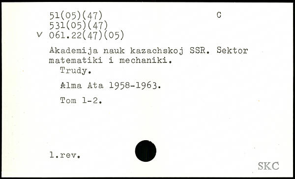 Akademija nauk kazachskoj SSR. Sektor matematiki i mechaniki. Trudy. Alma Ata 1958-1963. Tom 1-2. l.rev.