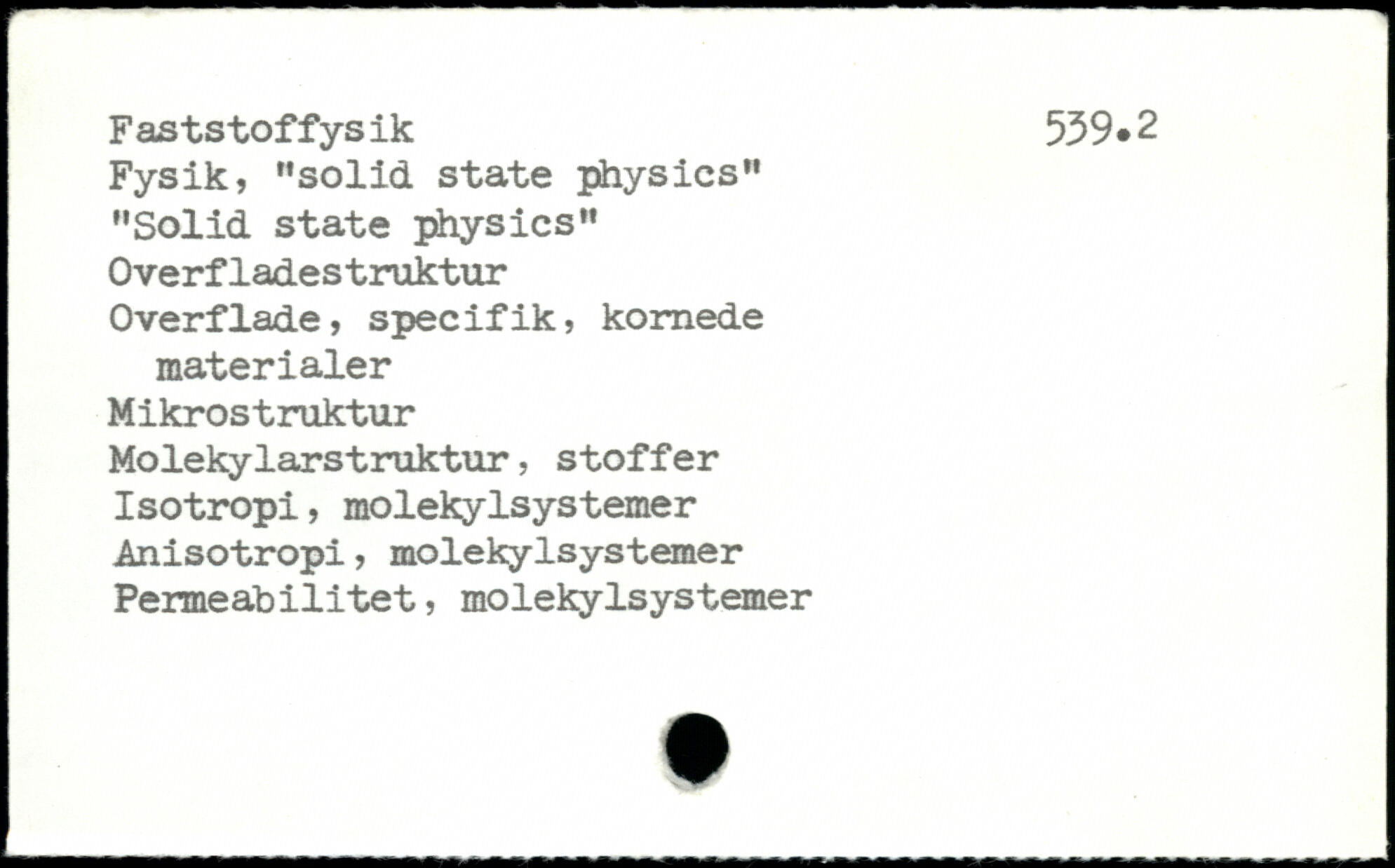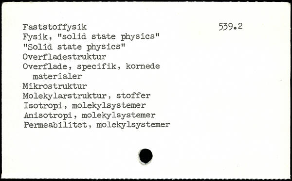 Fysik, "solid state physics" "Solid state physics" Overfladestruktur Overflade, specifik, kornede materialer Mikrostruktur Molekylarstruktur, stoffer Isotropi, molekylsystemer Anisotropi, molekylsystemer Permeabilitet, molekylsystemer
