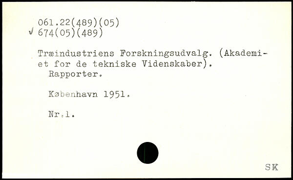 Træindustriens Forskningsudvalg. (Akademiet for de tekniske Videnskaber). Rapporter. Ko b e .rihavn 1951, Nr .1.