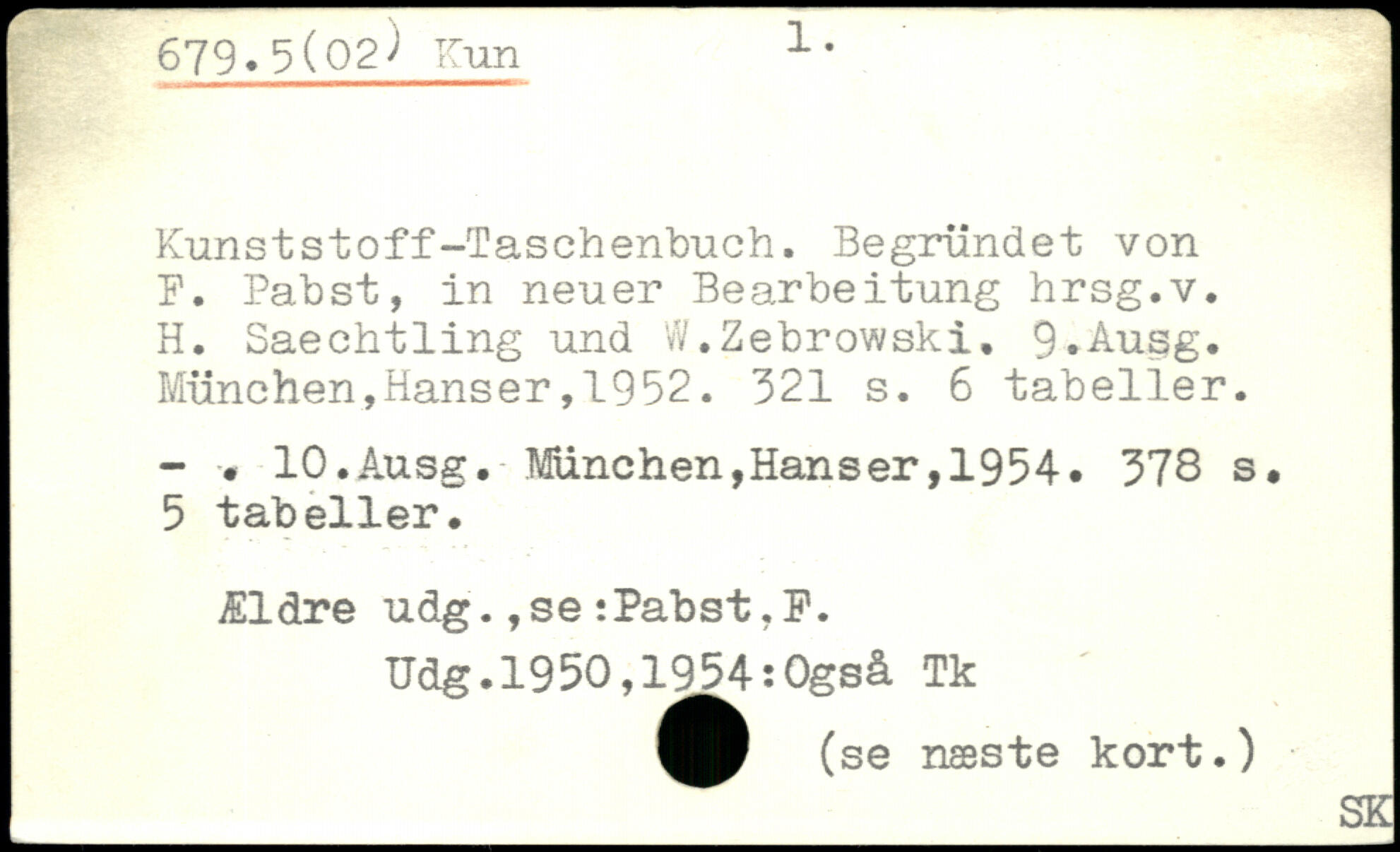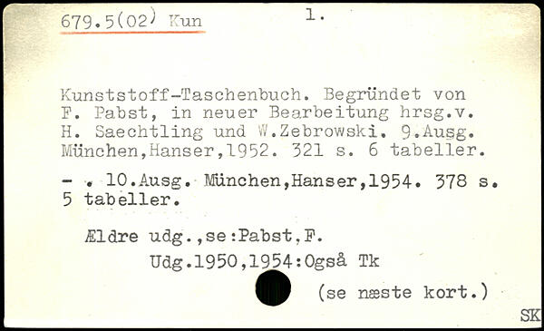 Kunststoff-Taschenbuch. Begründet von P. Pabst, in neuer Bearbeitung hrsg.v. H. Saechtling und W.Zebrowski, 9.Ausg.