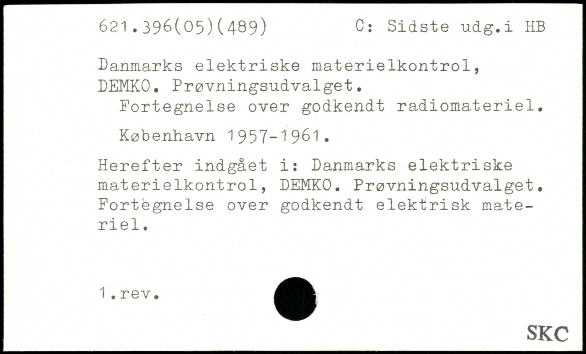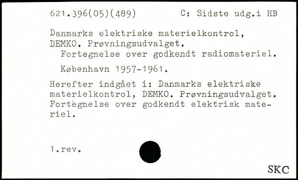 Danmarks elektriske materielkontrol, DEMKO. Prøvningsudvalget. Fortegnelse over godkendt radiomateriel.