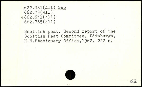 Scottish peat. Second report of Jhe Scottish Peat Committee. Edinburgh, H.M.Stationery Office,1962.
