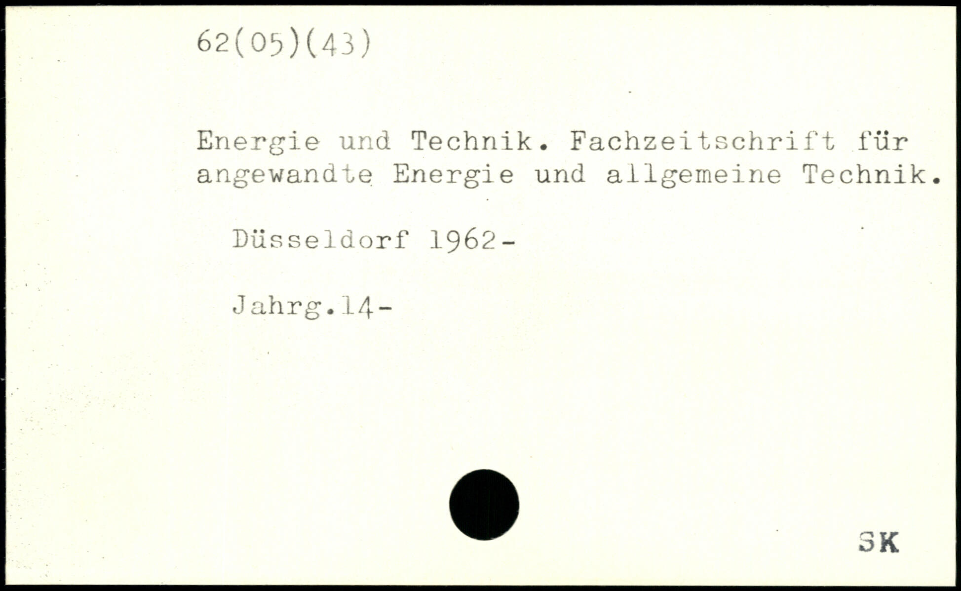 Energie und Technik. Fachzeitschrift für angewandte Energie und allgemeine Technik. Düsseldorf 1962- Jahrg.14-