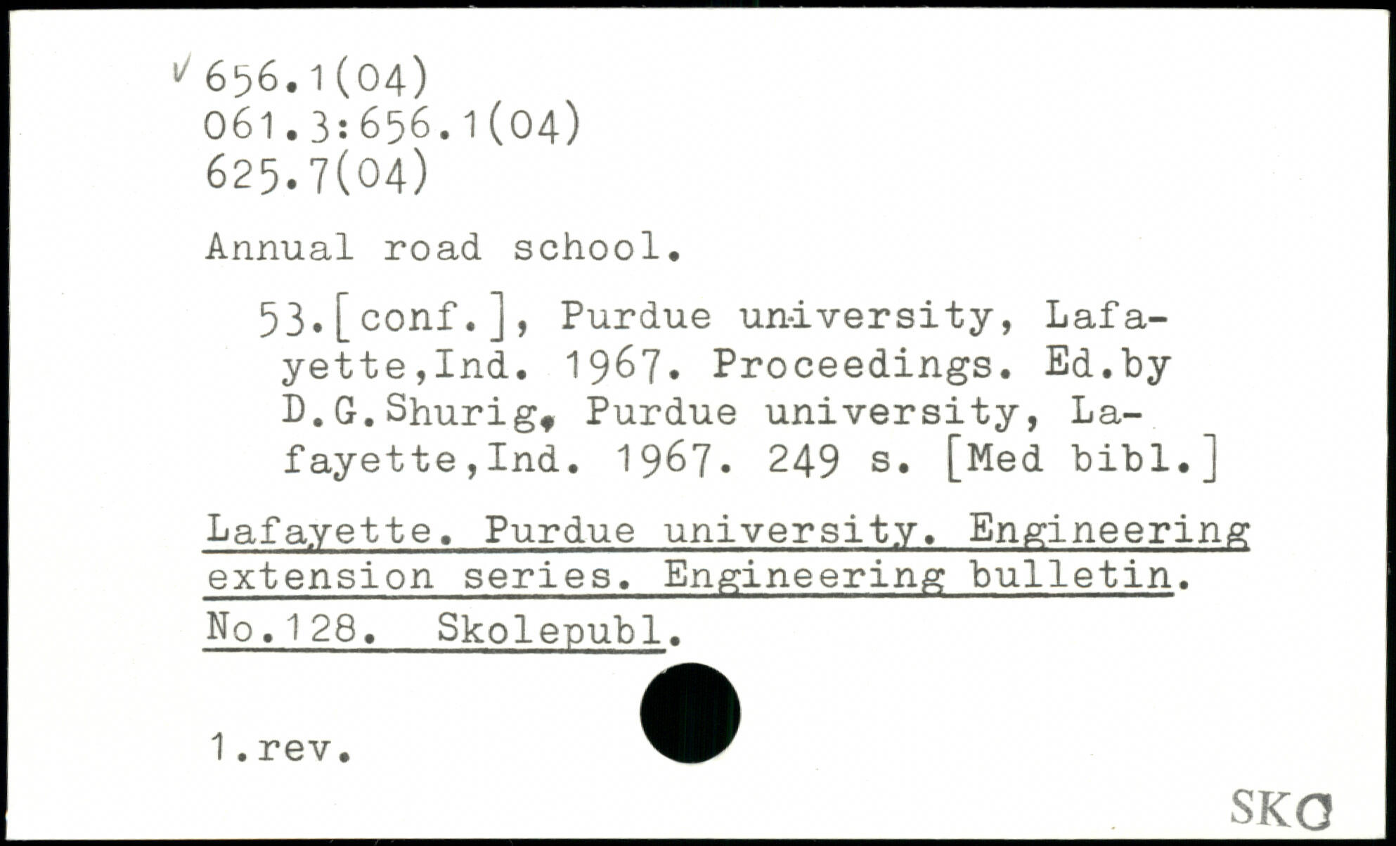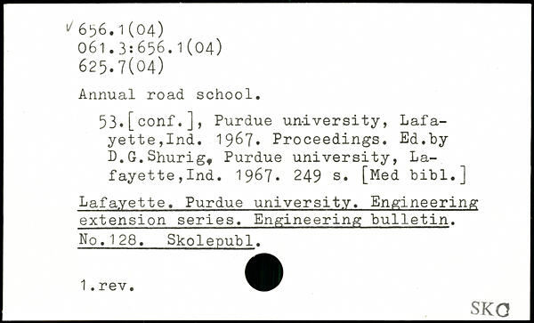 Annual road school. 53.[conf.], Purdue university, Lafa-yette,Ind. 1967. Proceedings. Ed.by D.G.Shurig, Purdue university, Lafayette,Ind. 1967