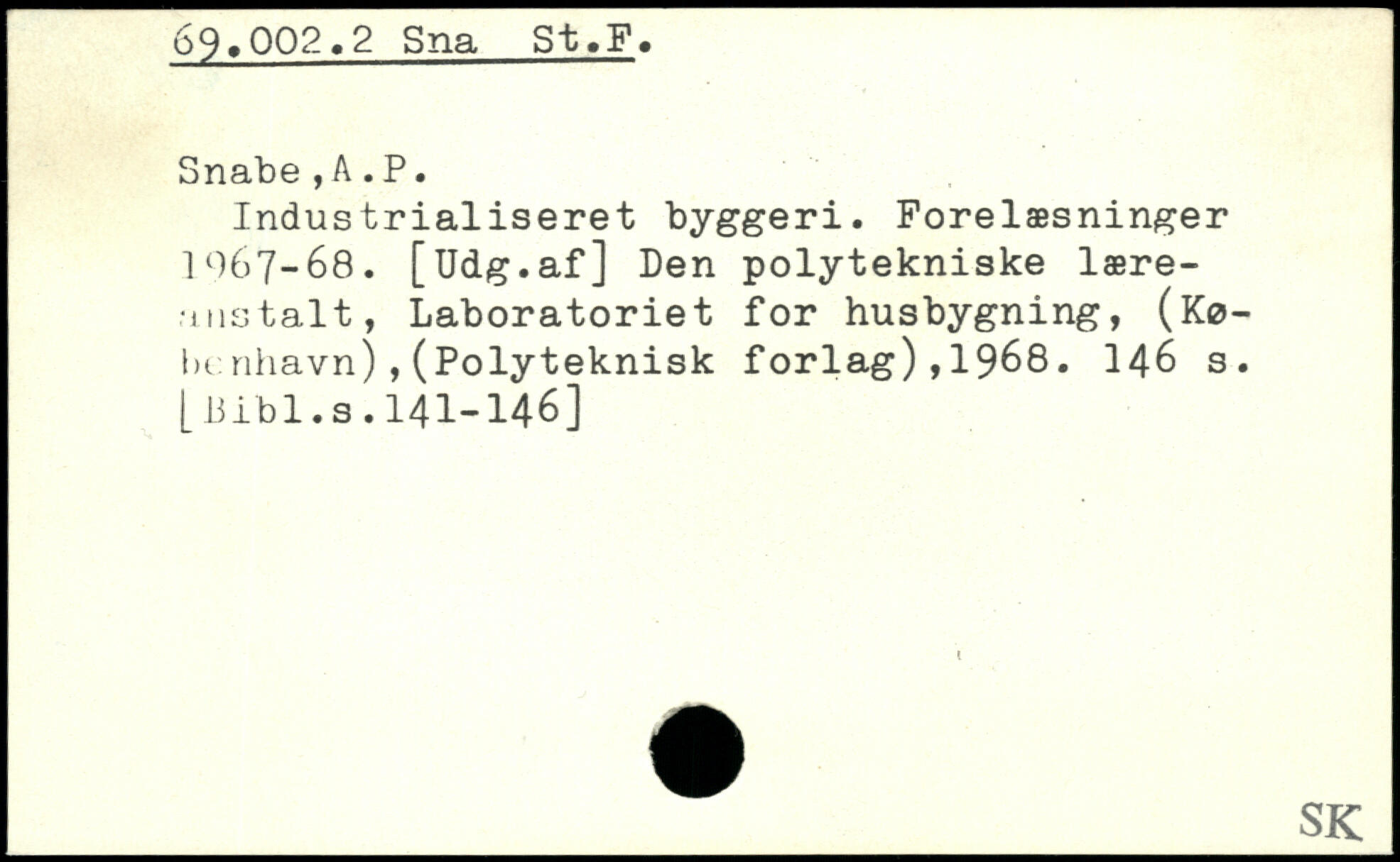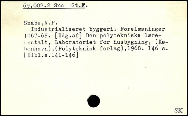 Industrialiseret byggeri. Forelæsninger 1067-68. [Udg.af] Den polytekniske læreanstalt, Laboratoriet for husbygning, (Købt: nhavn ),(Polyteknisk forlag),1968.