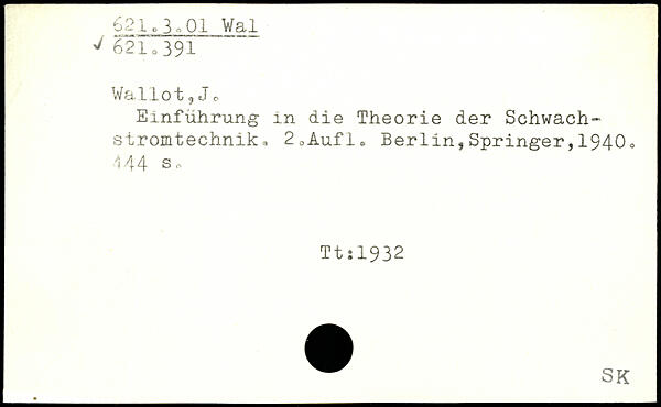 Einführung in die Theorie der Schwachstromtechnik., 2 oAufl.