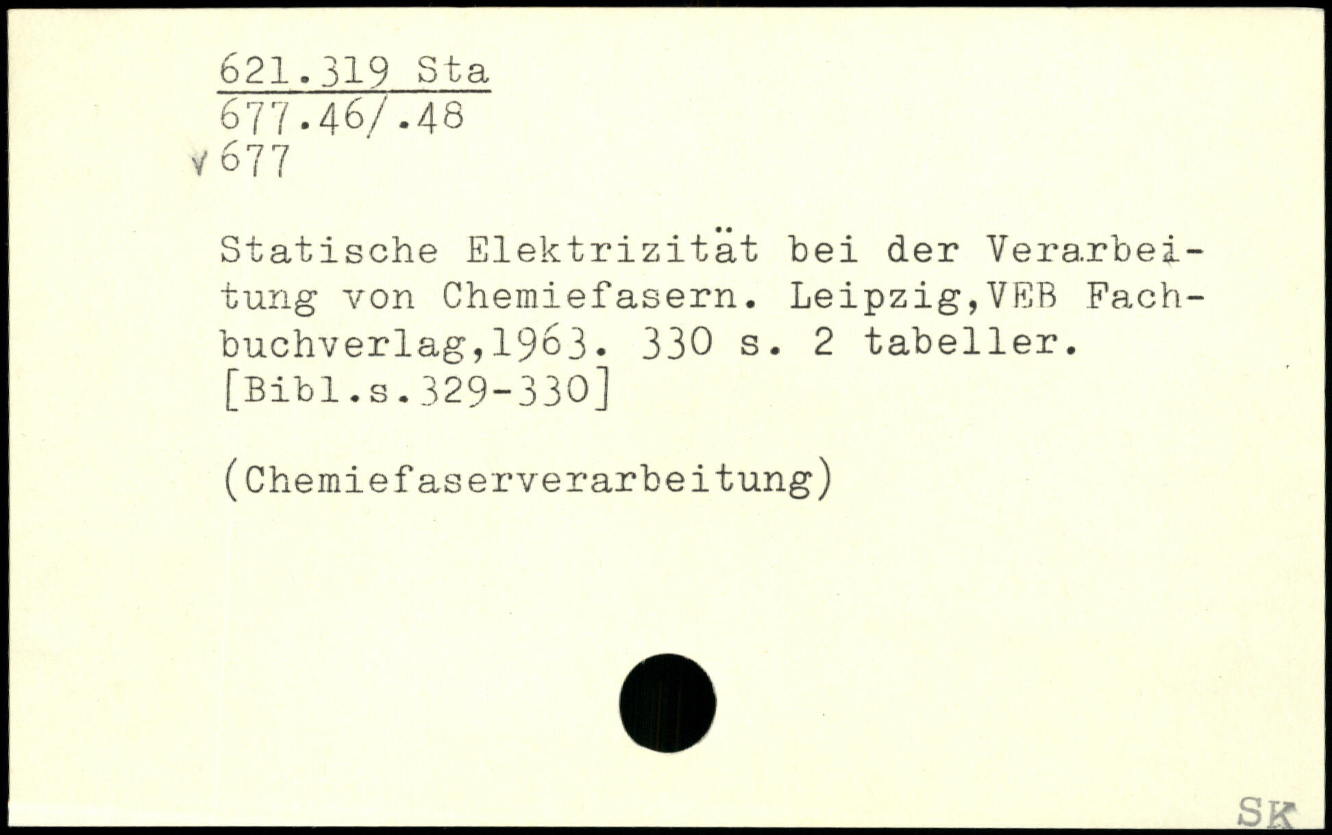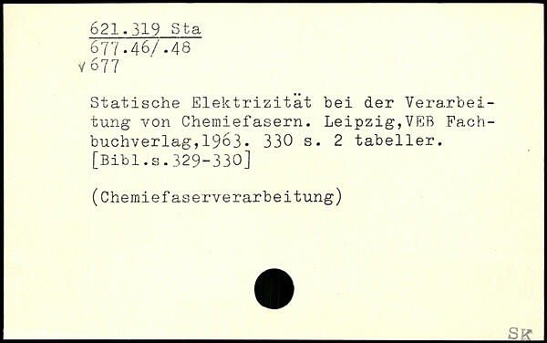 Statische Elektrizität bei der Verarbeitung von Chemiefasern. Leipzig,VEB Fachbuchverlag, 19o3.