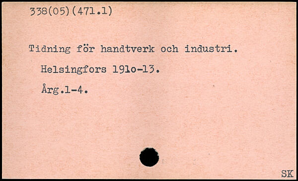 Tidning för handtverk och industri, Helsingfors 191o-13. Årg.1-4.