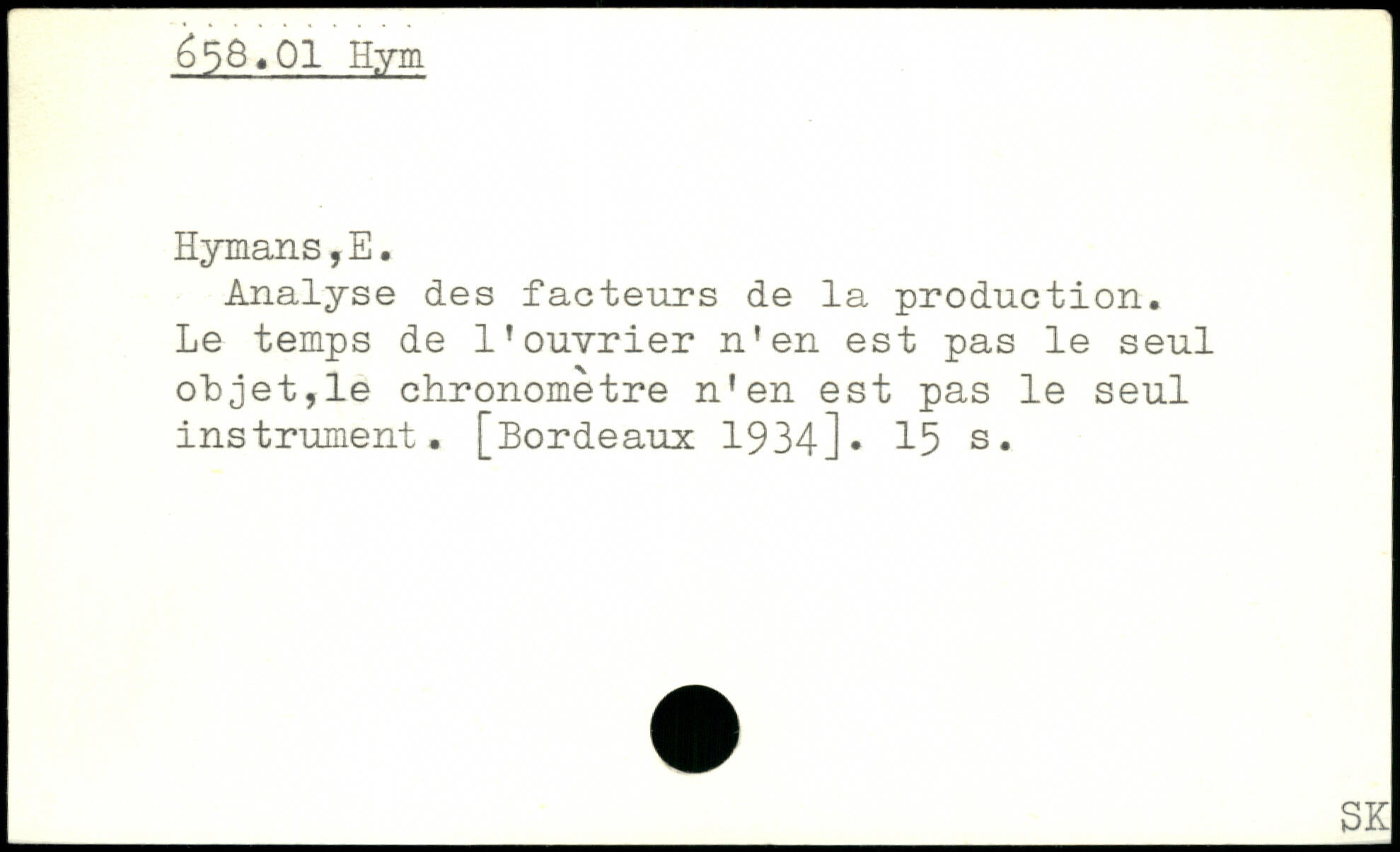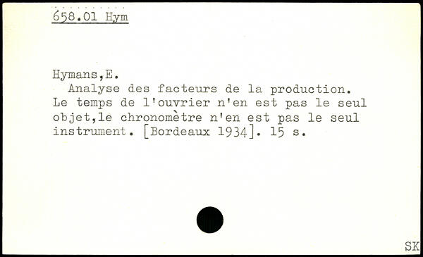 Analyse des facteurs de la production. Le temps de l’ouvrier n’en est pas le seul objet,le chronomètre n'en est pas le seul instrument. [Bordeaux 1934]