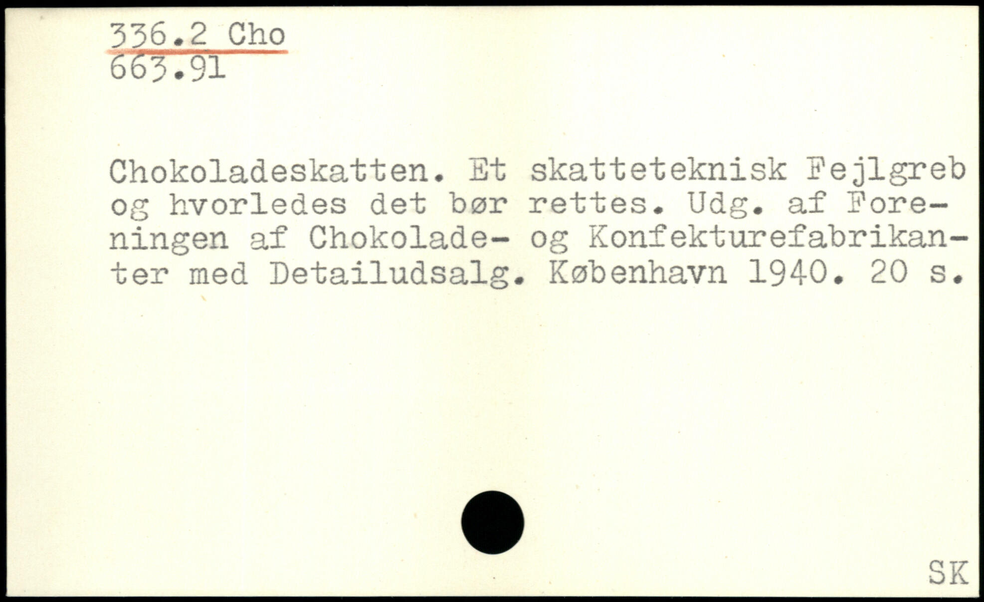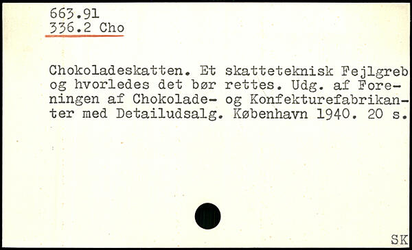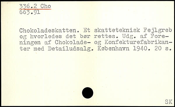 Chokoladeskatten. Et skatteteknisk Fejlgreb og hvorledes det bør rettes. Udg. af Foreningen af Chokolade- og Konfekturefabrikanter med Detailudsalg.