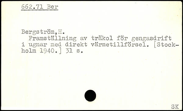 Framställning av träkol för gengasdrift i ugnar med direkt värmetillförsel.