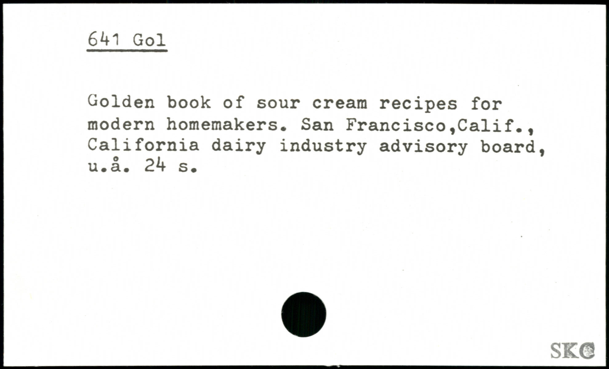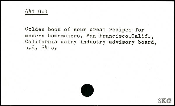 Golden book of sour cream recipes for modern homemakers. San Francisco,Calif., California dairy industry advisory board, u.a. 2k s. _SK0