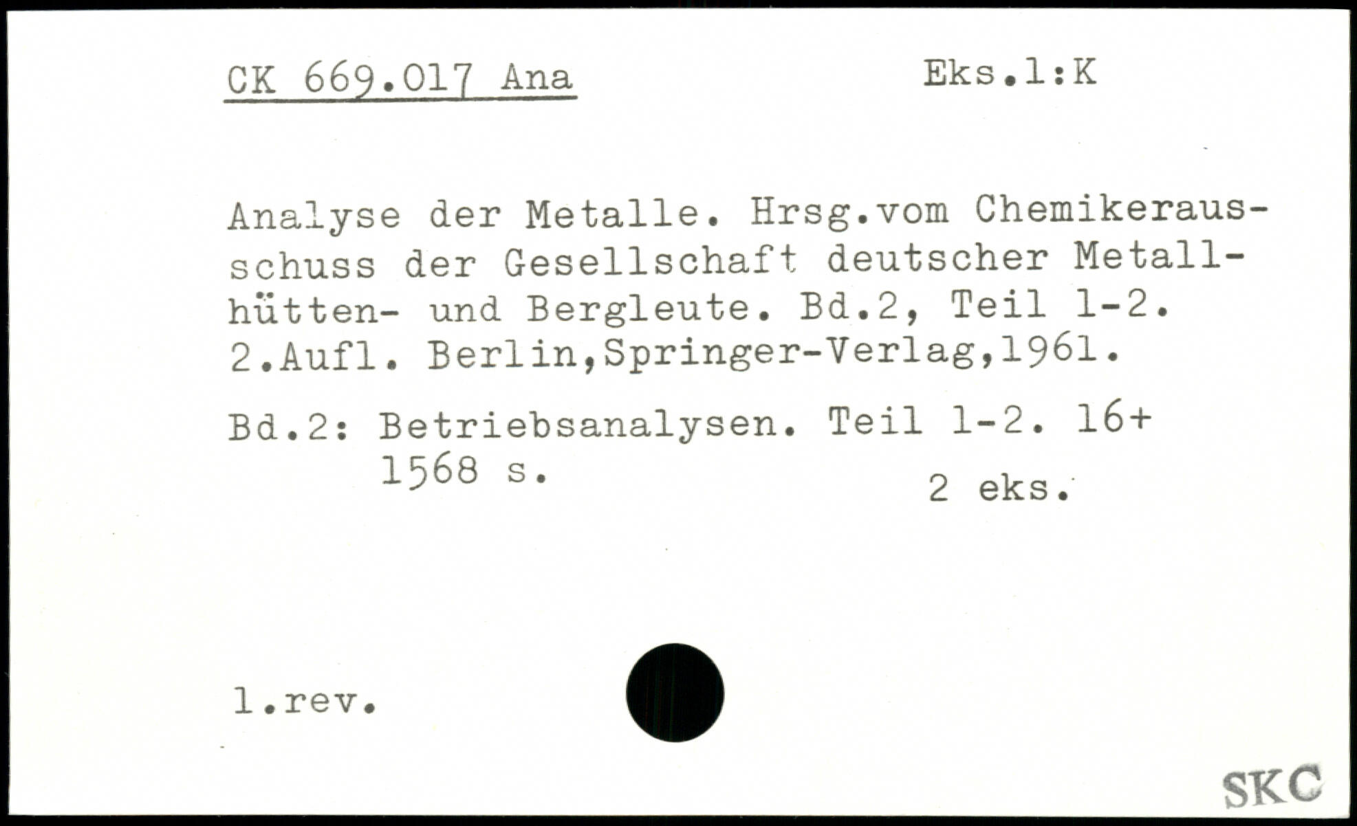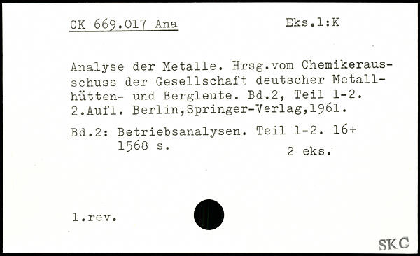 Analyse der Metalle. Hrsg.vom Chemikerausschuss der Gesellschaft deutscher Metallhutten- und Bergleute.