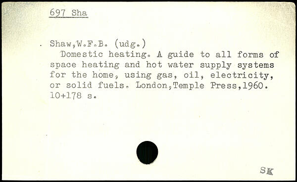 . Shaw/WoFoBo (udgo) Domestic heating <> A guide to all forms of space heating and hot water supply systems for the home, using gas, oil, electricity, or solid fuels