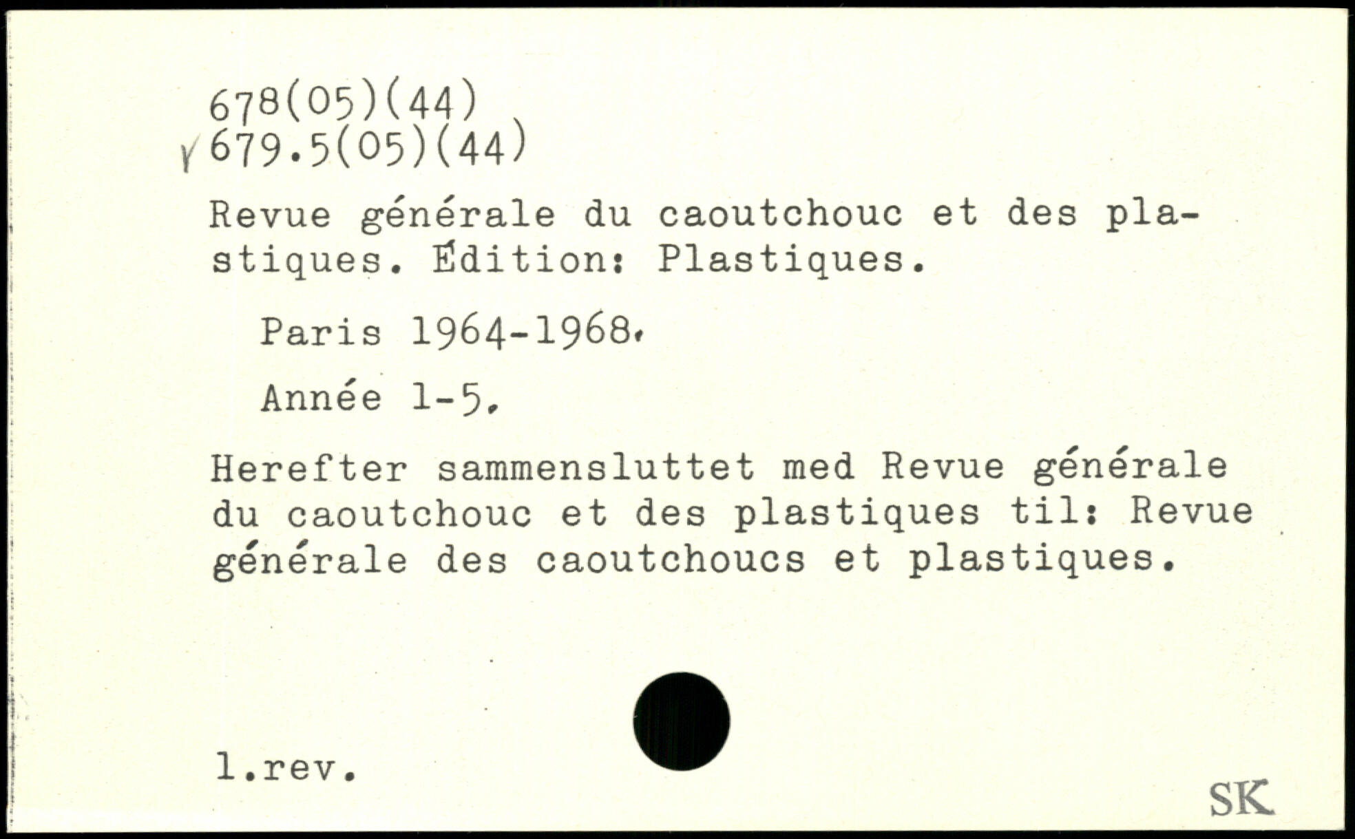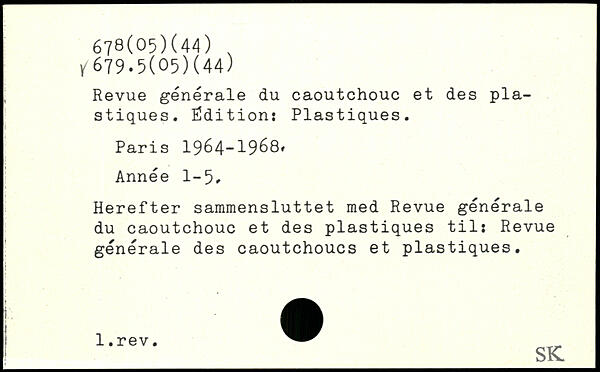Revue générale du caoutchouc et des plastiques. Édition: Plastiques.