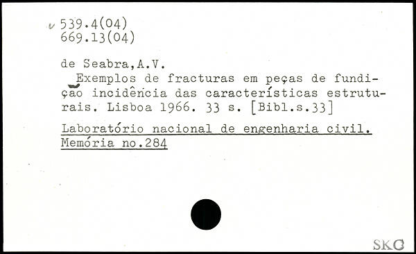 Exemplos de fracturas em peças de fundi-çao incidêricia das caracteristicas estrutu-rais. Lisboa 1966.