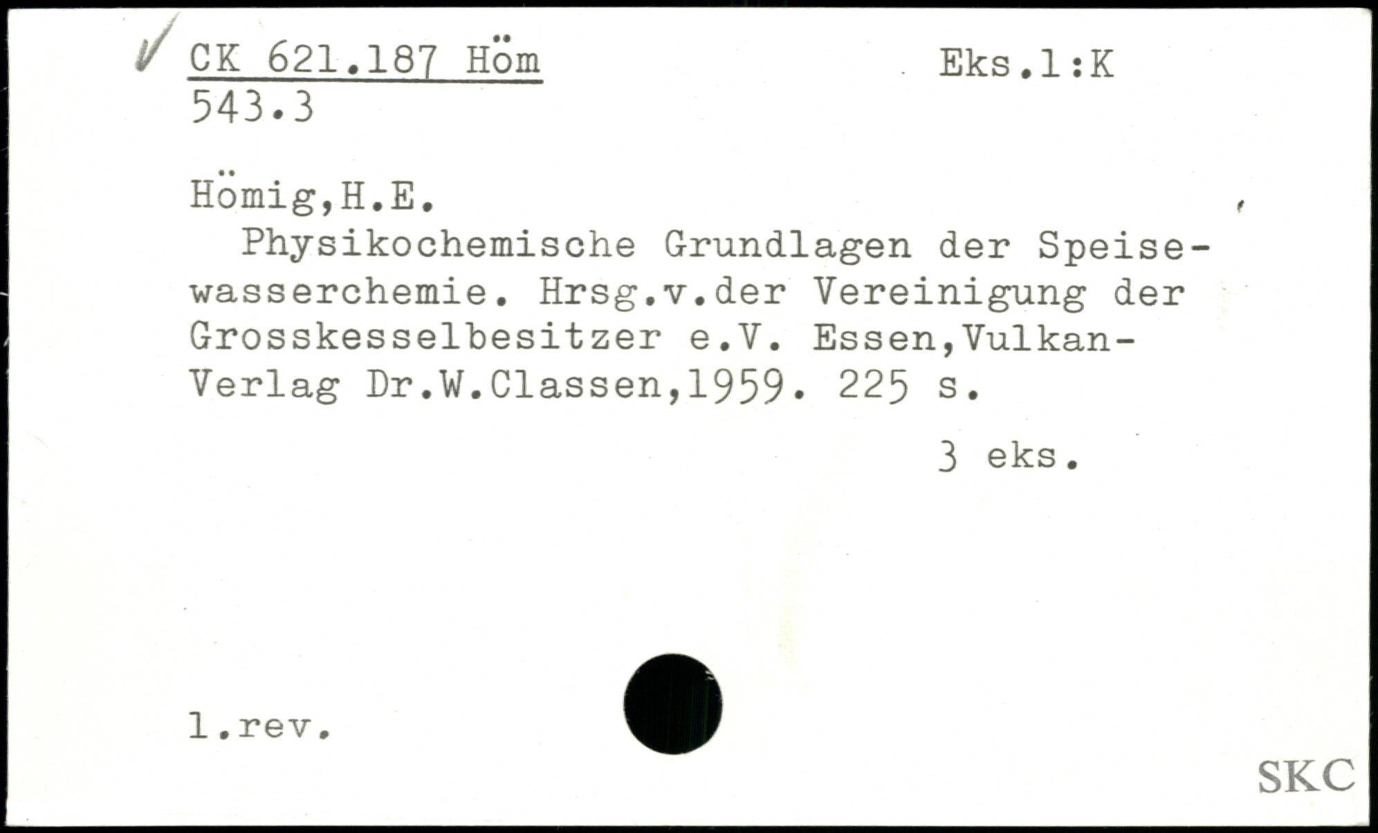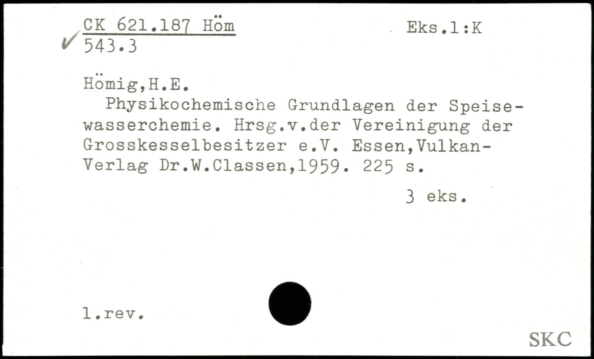 Physikochemische Grundlagen der Speisewasserchemie. Hrsg.v.der Vereinigung der Grosskesselbesitzer e.V. Essen,Vulkan-Verlag Dr,W.Classen,1959