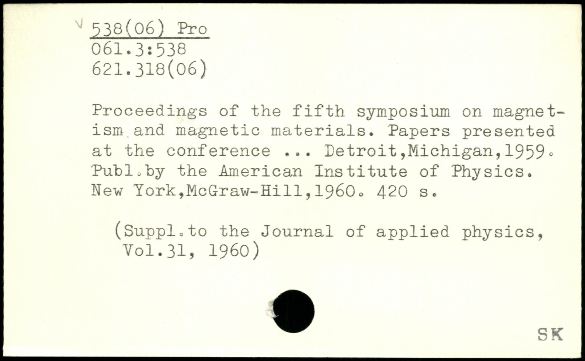 Proceedings of the fifth symposium on magnetism, and magnetic materials. Papers presented at the conference ...