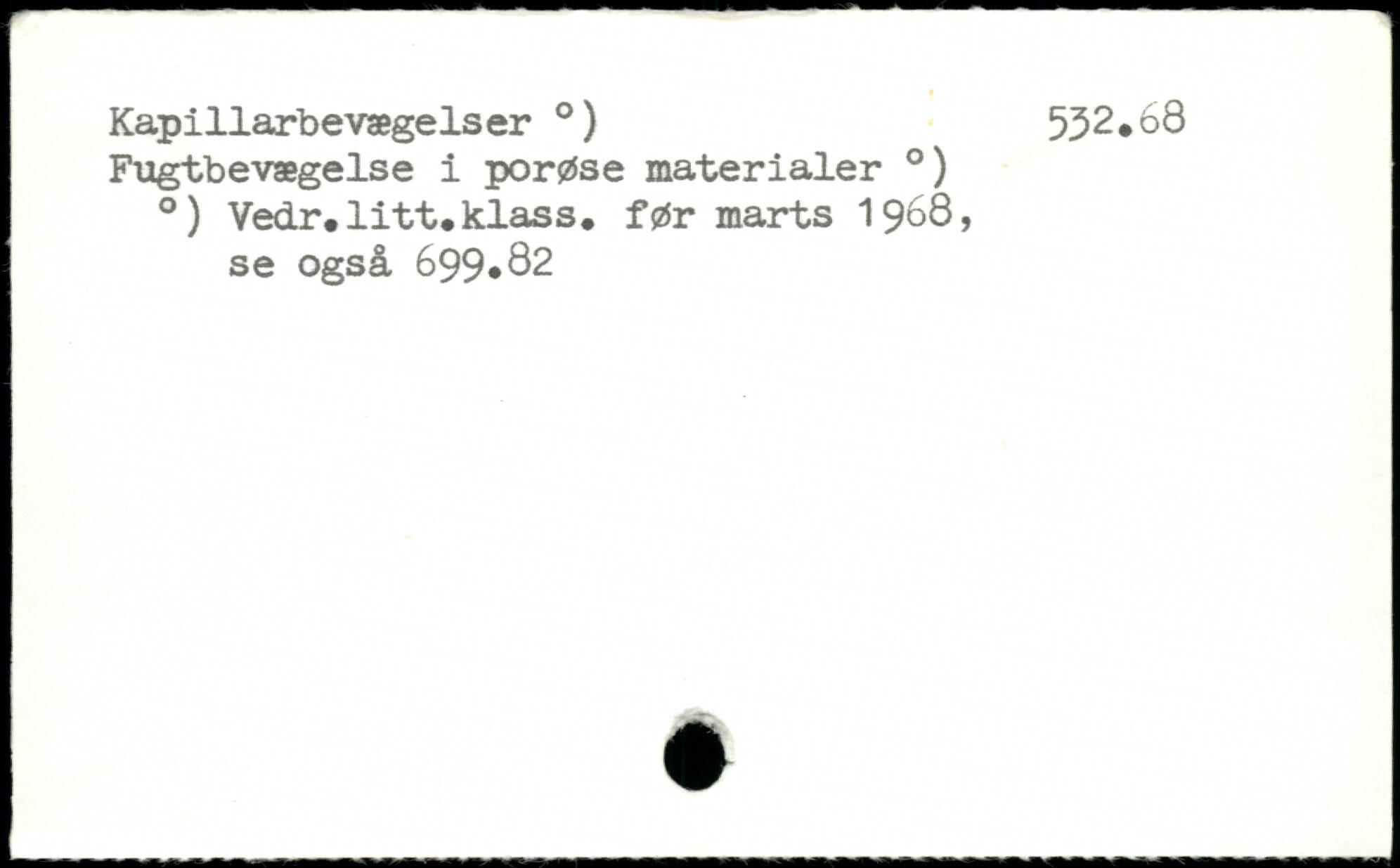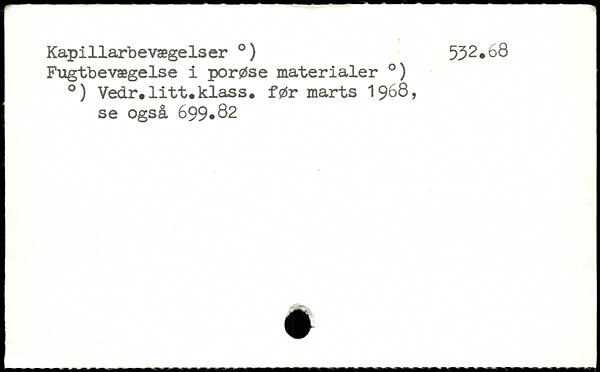 Fugtbevægelse i porøse materialer .) .) Vedr.litt.klass, før marts 1968, se også 699.Q2